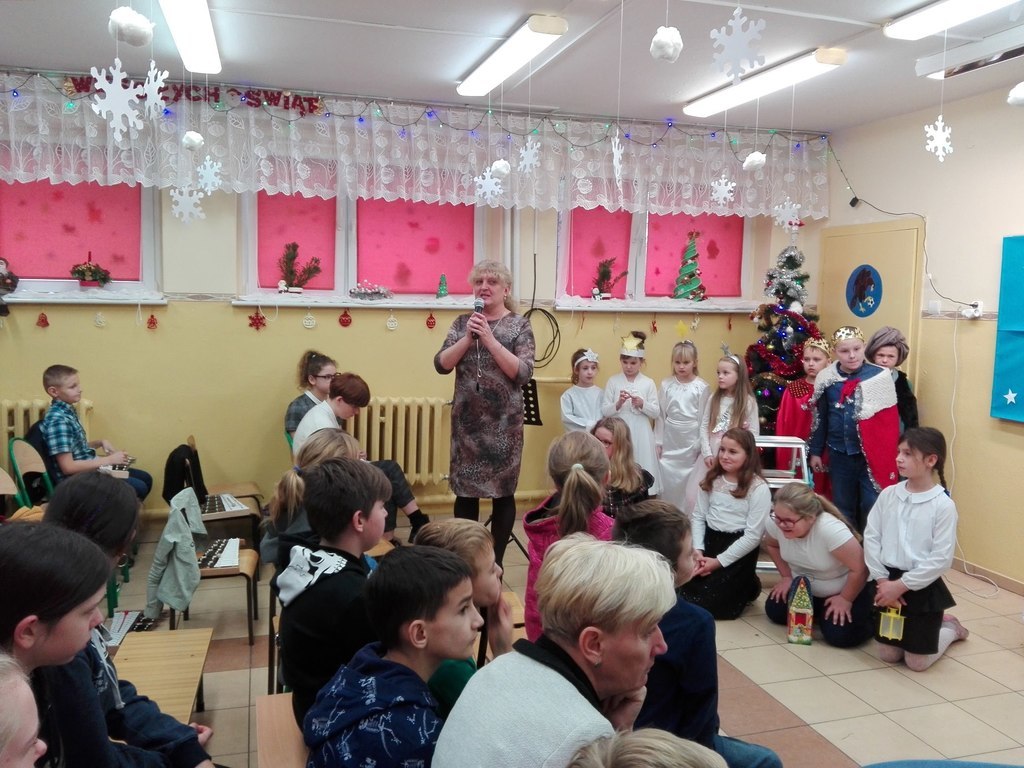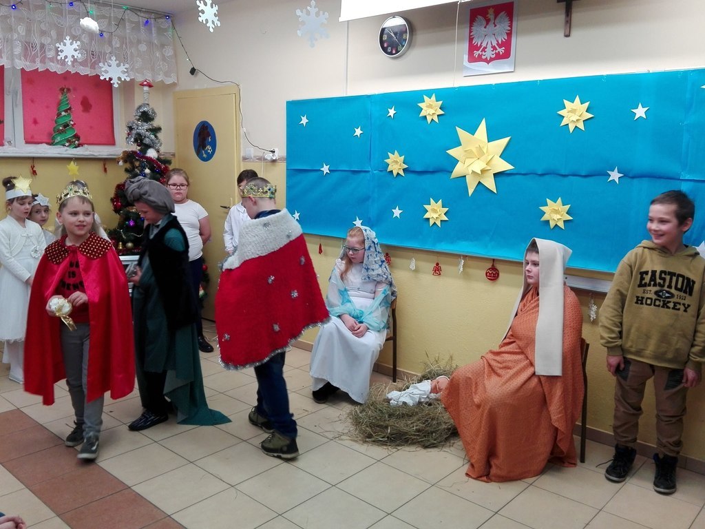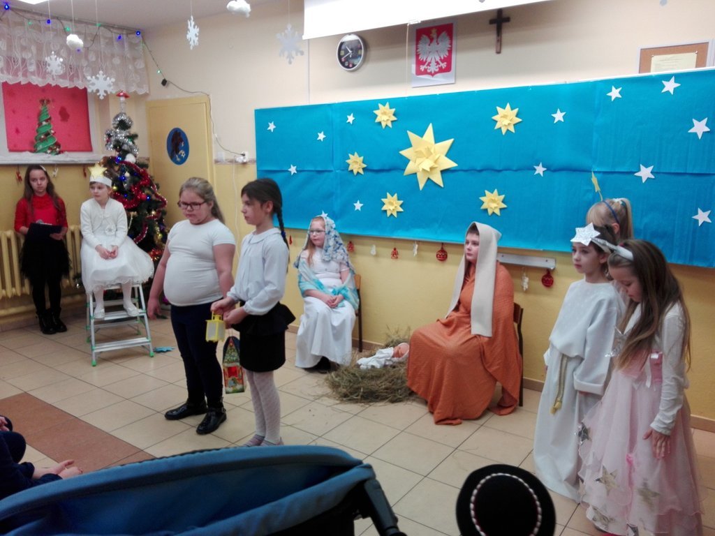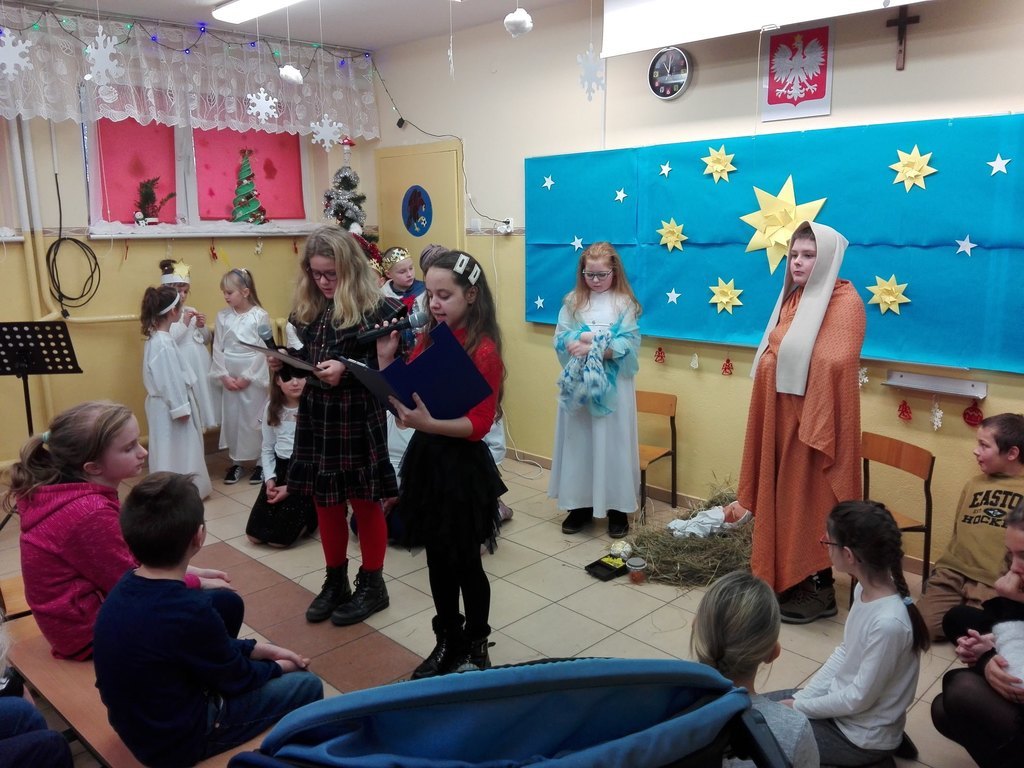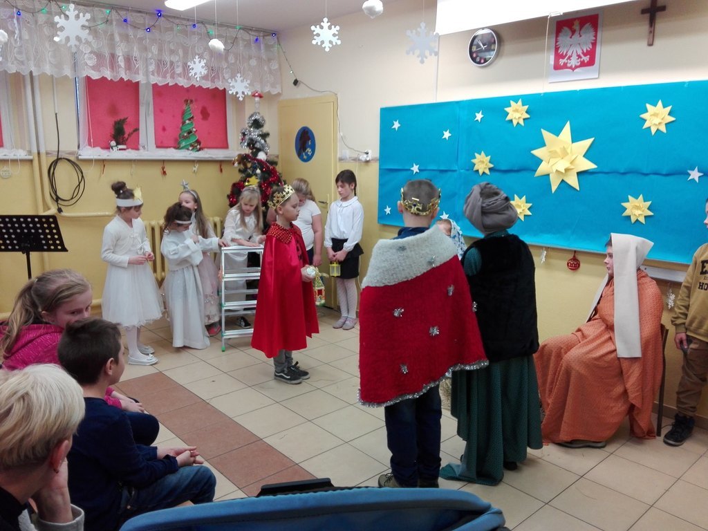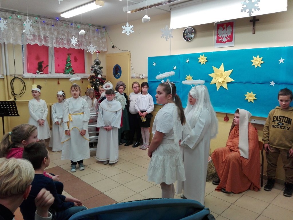 12 grudnia nasi uczniowie uczestniczyli w świątecznym apelu zorganizowanym z okazji Świat Bożego Narodzenia. Dzieci zaprezentowały przedstawienie w formie Jasełek, zaśpiewały i zagrały kolędy na dzwonkach. Naszymi gośćmi byli: Ksiądz Proboszcz Roman Lidziński, Wiceprzewodniczący Rady Miasta i Gminy Gołańcz Pan Kazimierz Czajkowski, Panowie Radni Mirosław Frąckowiak i Józef Frieske. Po przedstawieniu został również rozstrzygnięty konkurs zorganizowany przez Radę Rodziców na najładniejszą ozdobę świąteczną. Zwycięzcom i wszystkim tym, którzy brali udział w konkursie serdecznie gratulujemy. Następnie wszyscy zostali zaproszeni do zakupu przepysznych ciast i gorących napojów oraz mogli uczestniczyć w kiermaszu, z którego dochód został przeznaczony na potrzeby naszych uczniów.