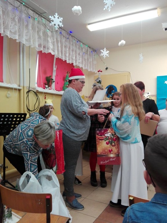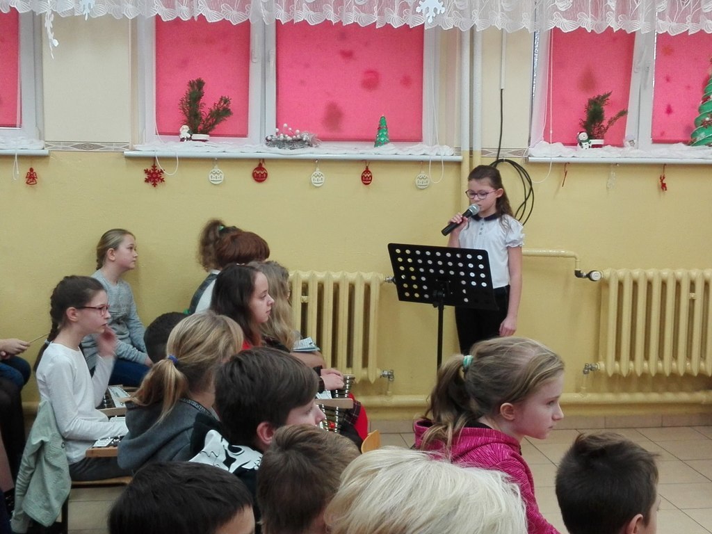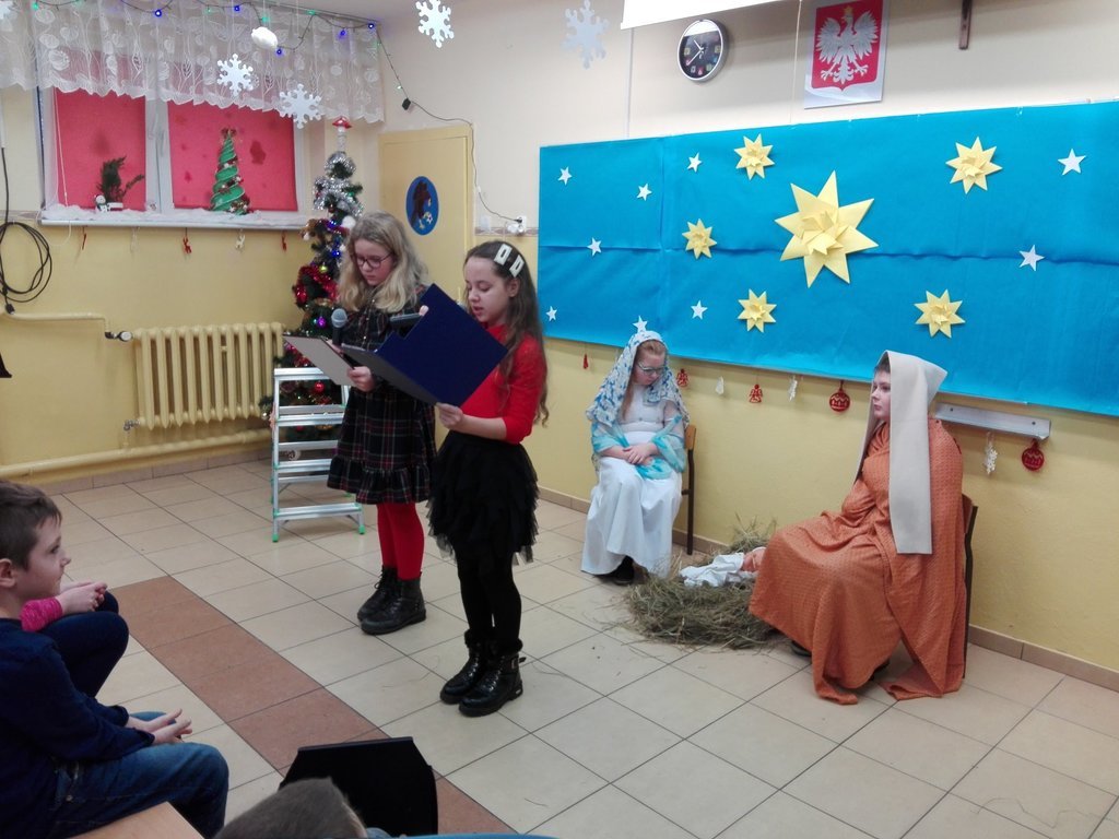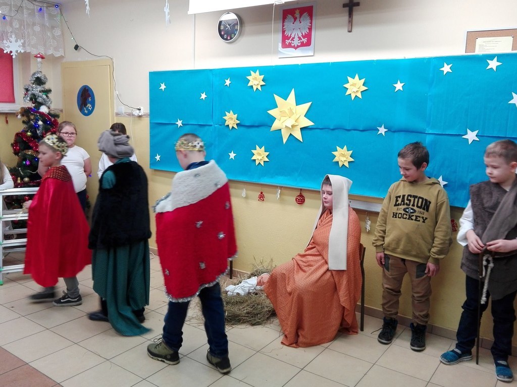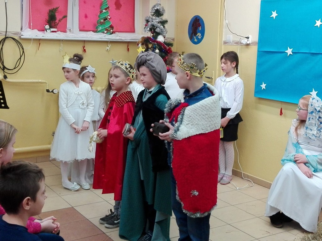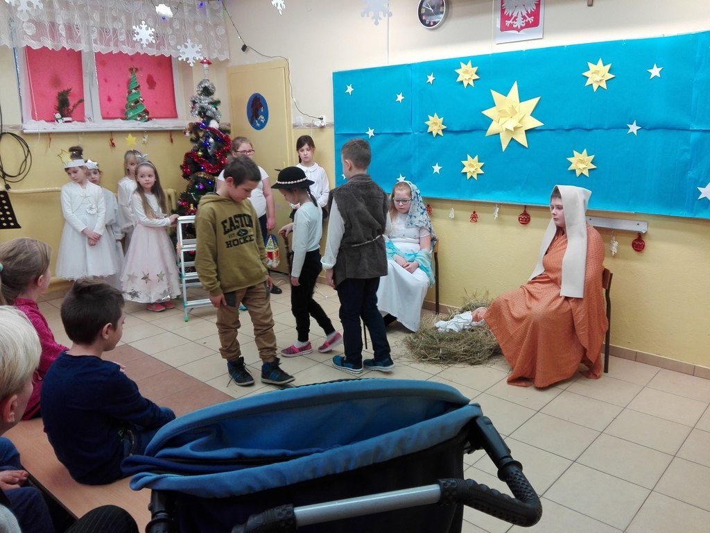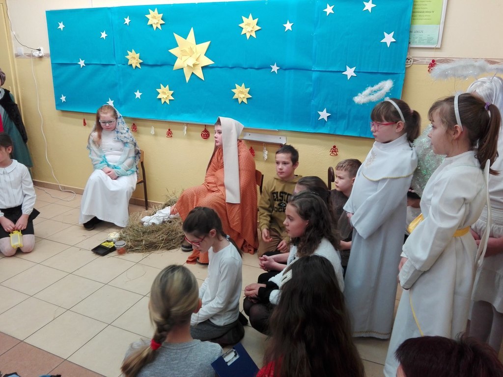 12 grudnia nasi uczniowie uczestniczyli w świątecznym apelu zorganizowanym z okazji Świat Bożego Narodzenia. Dzieci zaprezentowały przedstawienie w formie Jasełek, zaśpiewały i zagrały kolędy na dzwonkach. Naszymi gośćmi byli: Ksiądz Proboszcz Roman Lidziński, Wiceprzewodniczący Rady Miasta i Gminy Gołańcz Pan Kazimierz Czajkowski, Panowie Radni Mirosław Frąckowiak i Józef Frieske. Po przedstawieniu został również rozstrzygnięty konkurs zorganizowany przez Radę Rodziców na najładniejszą ozdobę świąteczną. Zwycięzcom i wszystkim tym, którzy brali udział w konkursie serdecznie gratulujemy. Następnie wszyscy zostali zaproszeni do zakupu przepysznych ciast i gorących napojów oraz mogli uczestniczyć w kiermaszu, z którego dochód został przeznaczony na potrzeby naszych uczniów.