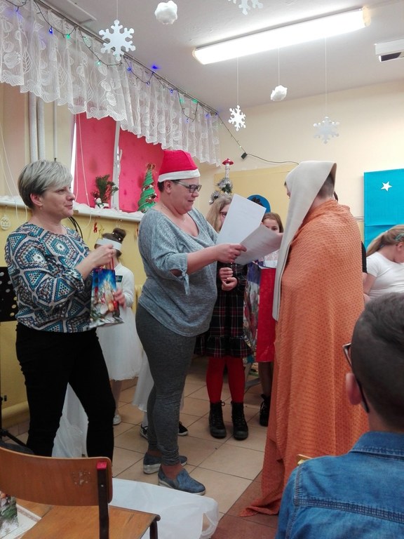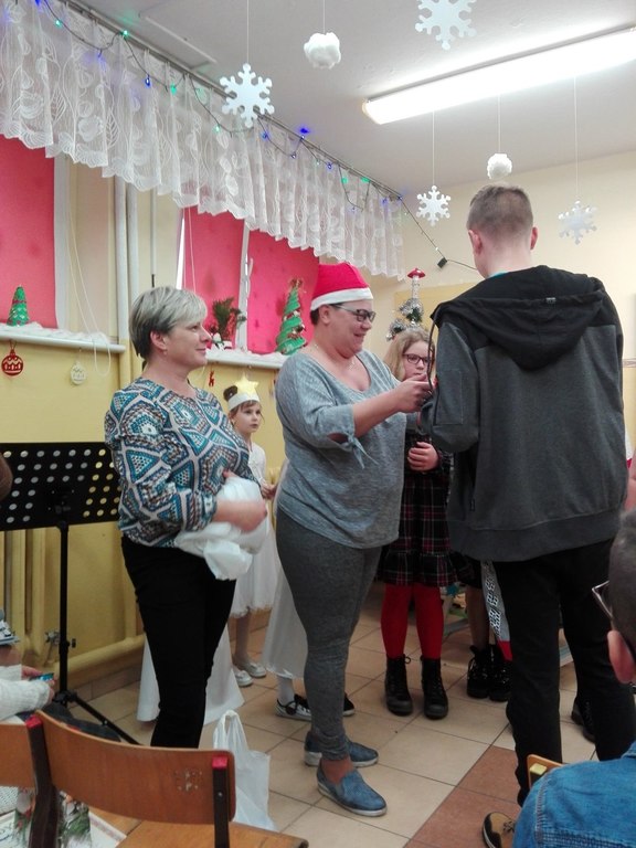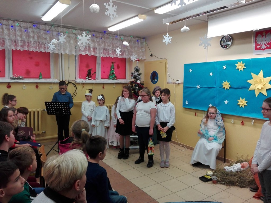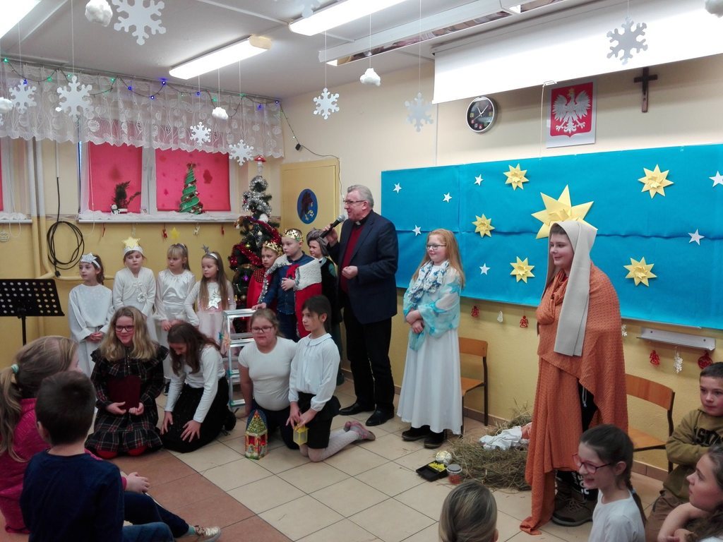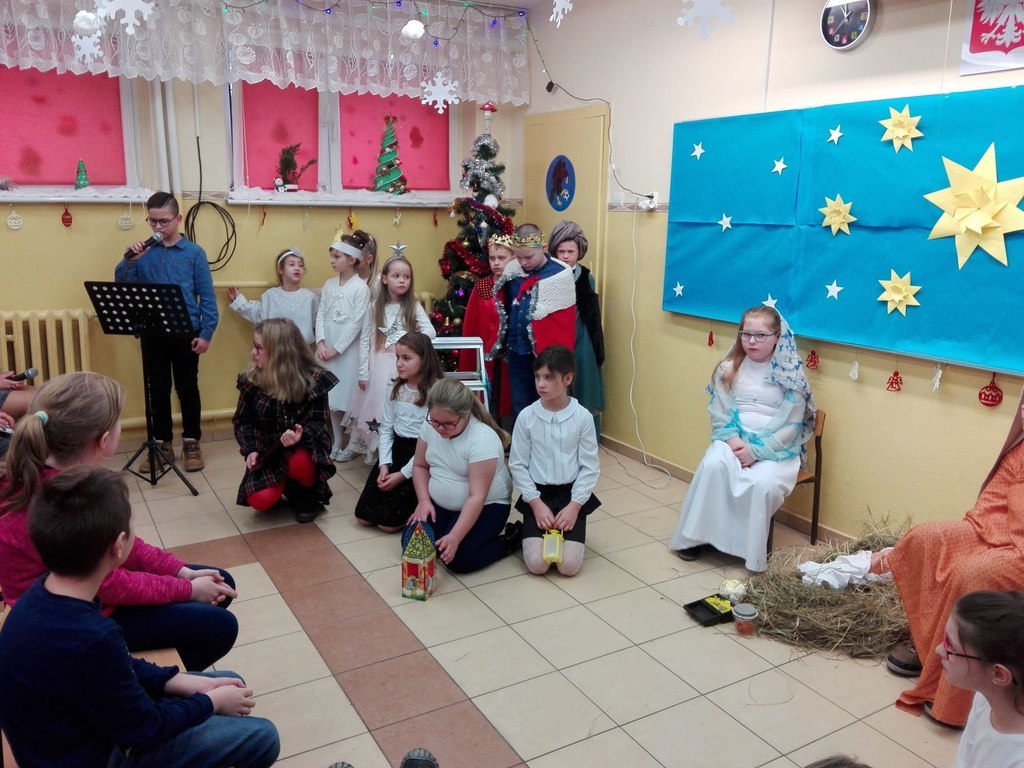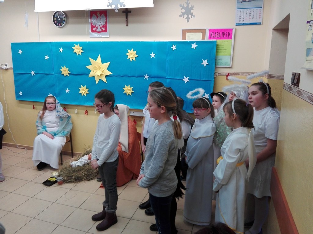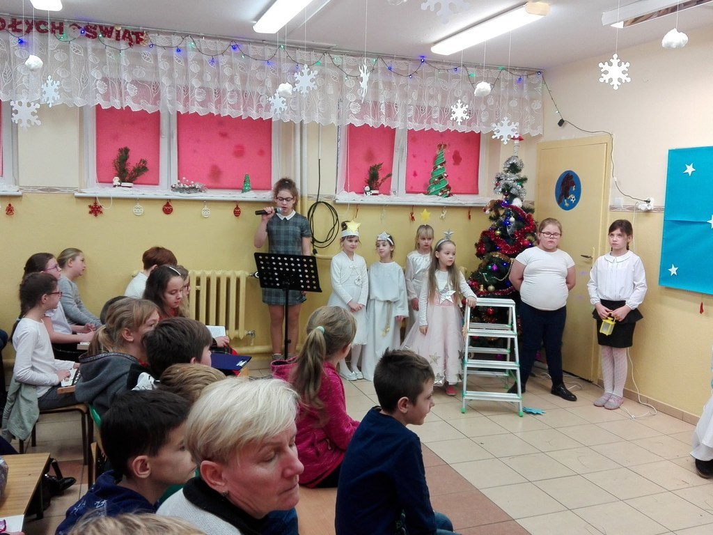 12 grudnia nasi uczniowie uczestniczyli w świątecznym apelu zorganizowanym z okazji Świat Bożego Narodzenia. Dzieci zaprezentowały przedstawienie w formie Jasełek, zaśpiewały i zagrały kolędy na dzwonkach. Naszymi gośćmi byli: Ksiądz Proboszcz Roman Lidziński, Wiceprzewodniczący Rady Miasta i Gminy Gołańcz Pan Kazimierz Czajkowski, Panowie Radni Mirosław Frąckowiak i Józef Frieske. Po przedstawieniu został również rozstrzygnięty konkurs zorganizowany przez Radę Rodziców na najładniejszą ozdobę świąteczną. Zwycięzcom i wszystkim tym, którzy brali udział w konkursie serdecznie gratulujemy. Następnie wszyscy zostali zaproszeni do zakupu przepysznych ciast i gorących napojów oraz mogli uczestniczyć w kiermaszu, z którego dochód został przeznaczony na potrzeby naszych uczniów.