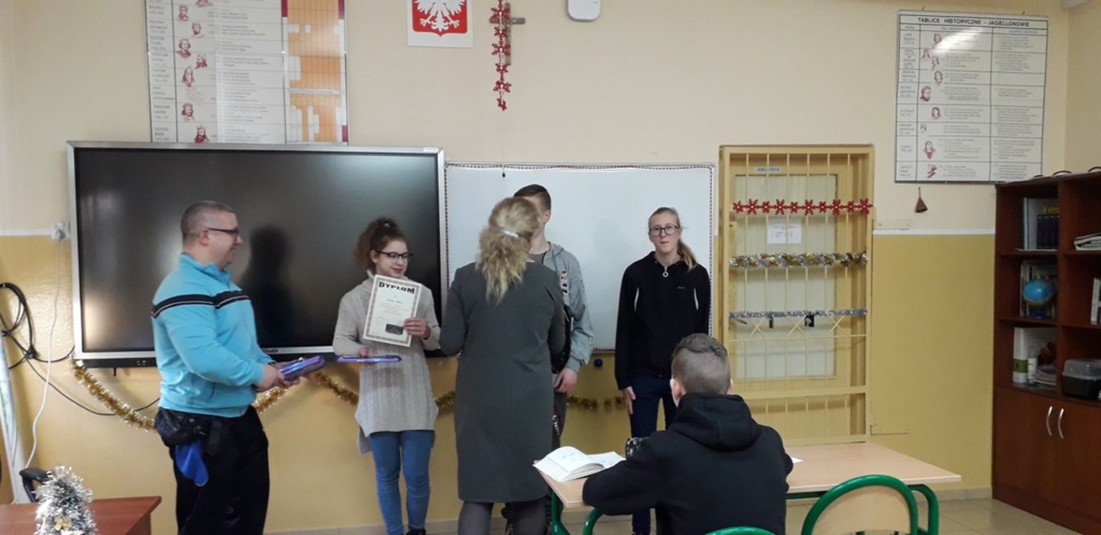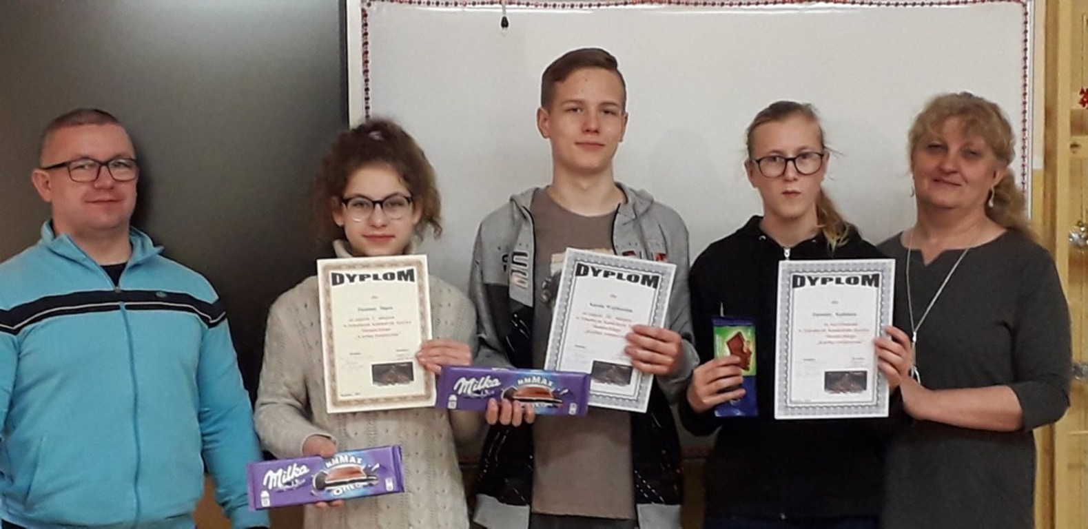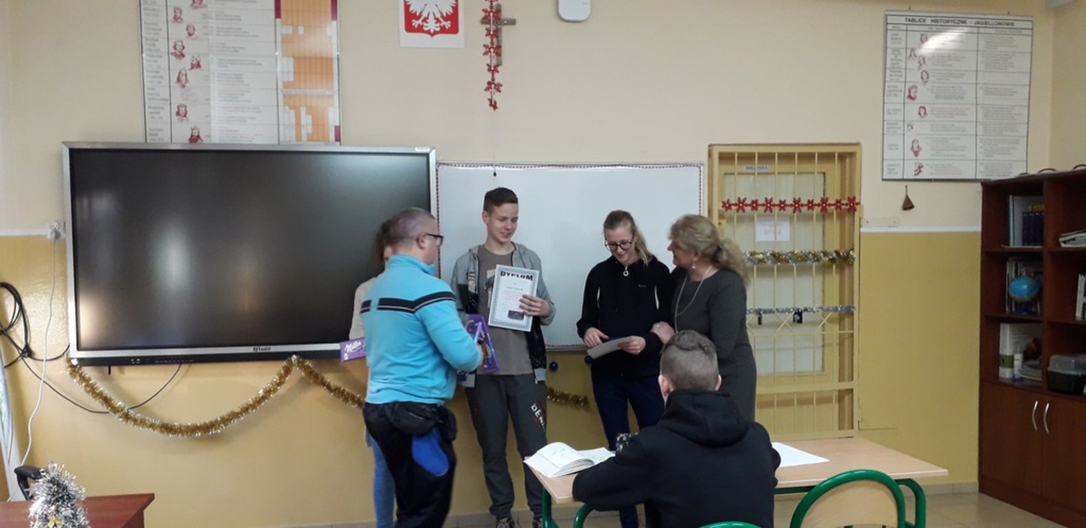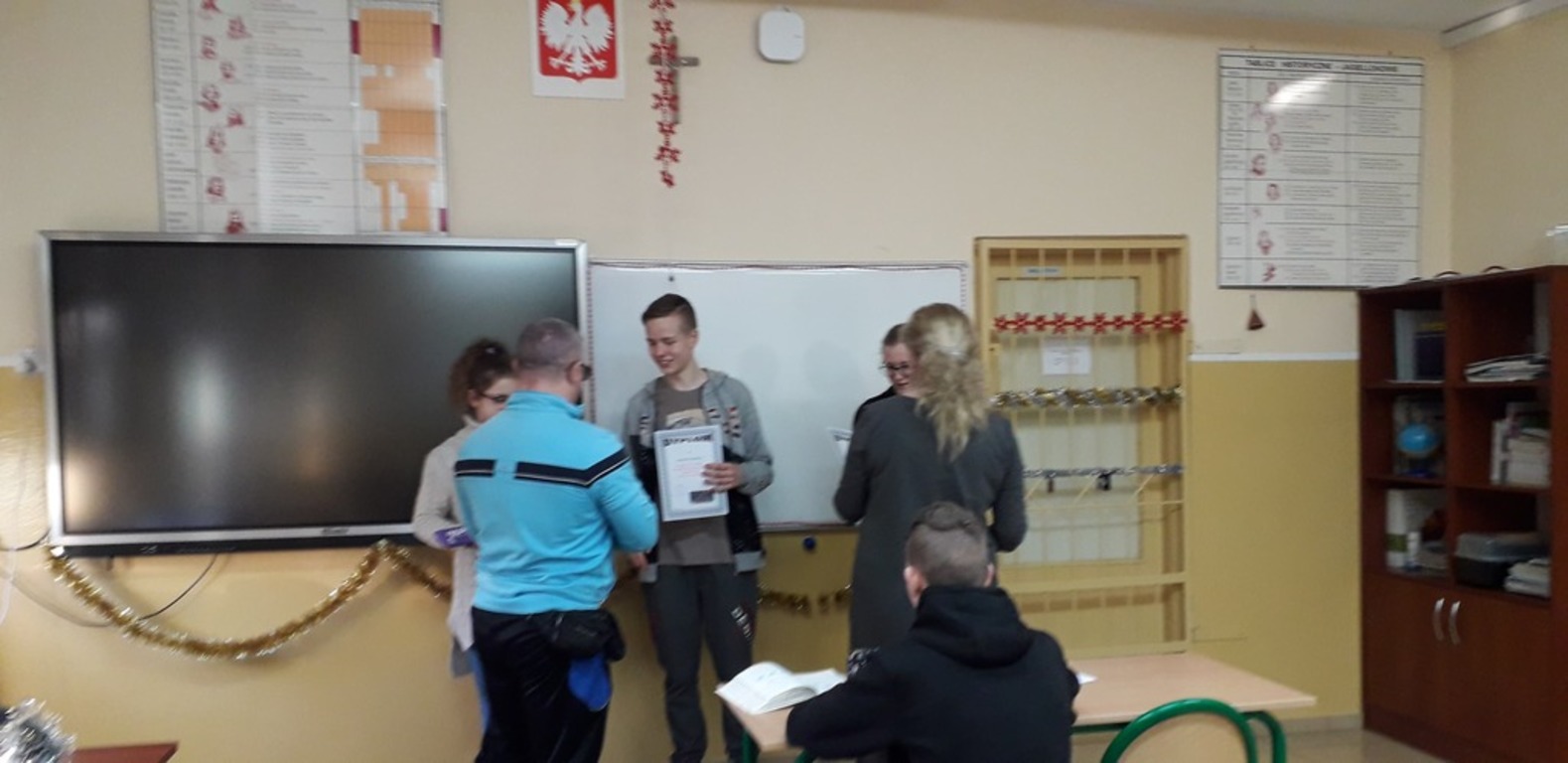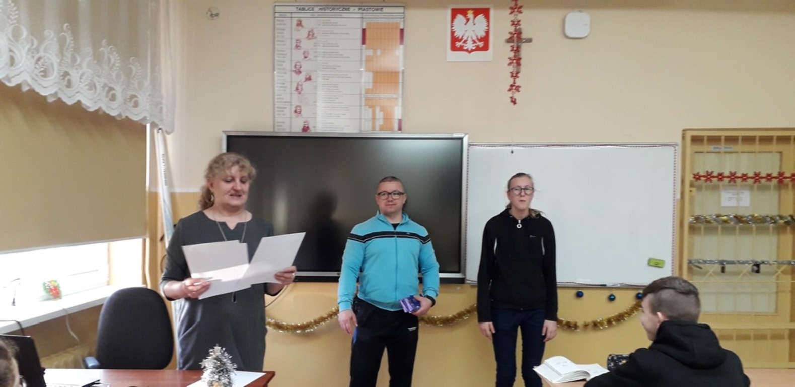 W dniu 20 grudnia 2019 roku odbył się w Naszej szkole konkurs plastyczny na „Świąteczną kartkę” w języku niemieckim. W konkursie wzięli udział wszyscy uczniowie klasy VII i VIII. Uczestnicy musieli wykonać własnoręcznie kartkę świąteczną oraz napisać życzenia w języku niemieckim. Wszystkie prace były wykonane bardzo dobrze, natomiast komisja konkursowa nagrodziła cztery najlepsze : I miejsce zajęła Zuzanna Ślipek, II miejsce Filip Kasperek, III miejsce Karol Wojtkowiak, natomiast wyróżnienie trafiło do Zuzanny Kędziora. Wszystkim uczestnikom serdecznie dziękuję za wkład w wykonanie prac.
