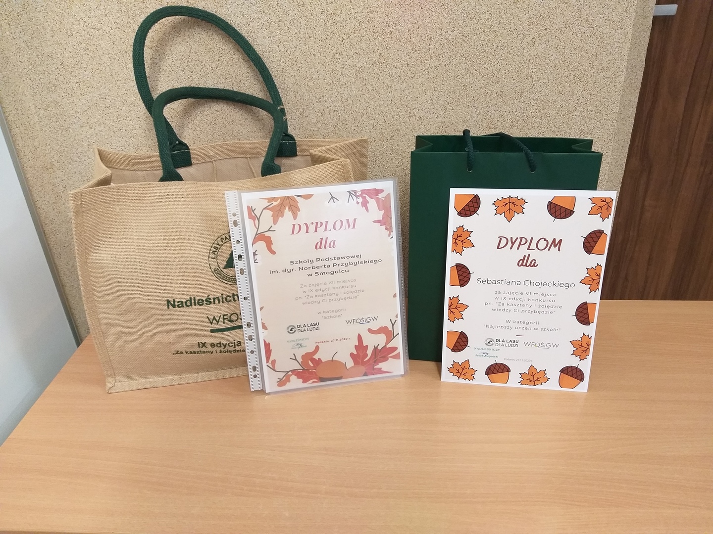 Uczniowie, którzy wzięli udział w konkursie zostali nagrodzeni przez Nadleśnictwo Podanin. Sebastian Chojecki, który w naszej szkole zajął I miejsce otrzymał głośnik bezprzewodowy, a pozostali drobne gadżety.
