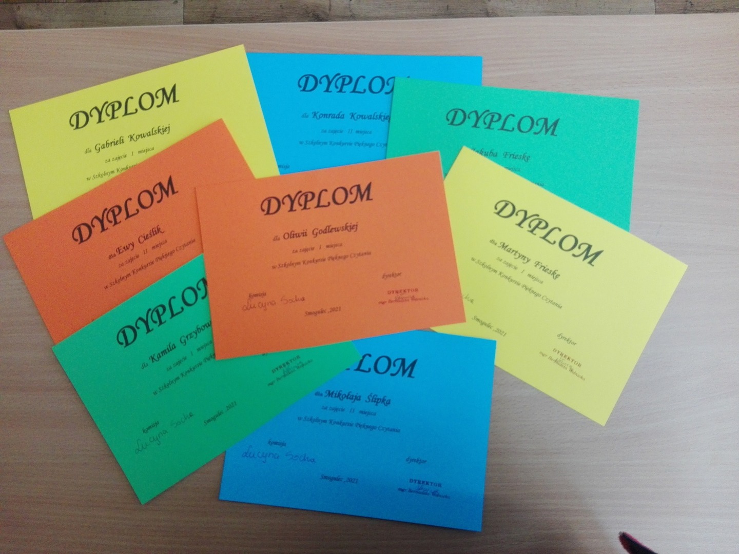 I miejsca uzyskali Oliwia Godlewska , Gabriela Kowalska i Martyna Frieske z klasy VI oraz Kamil Grzybowski z klasy VII