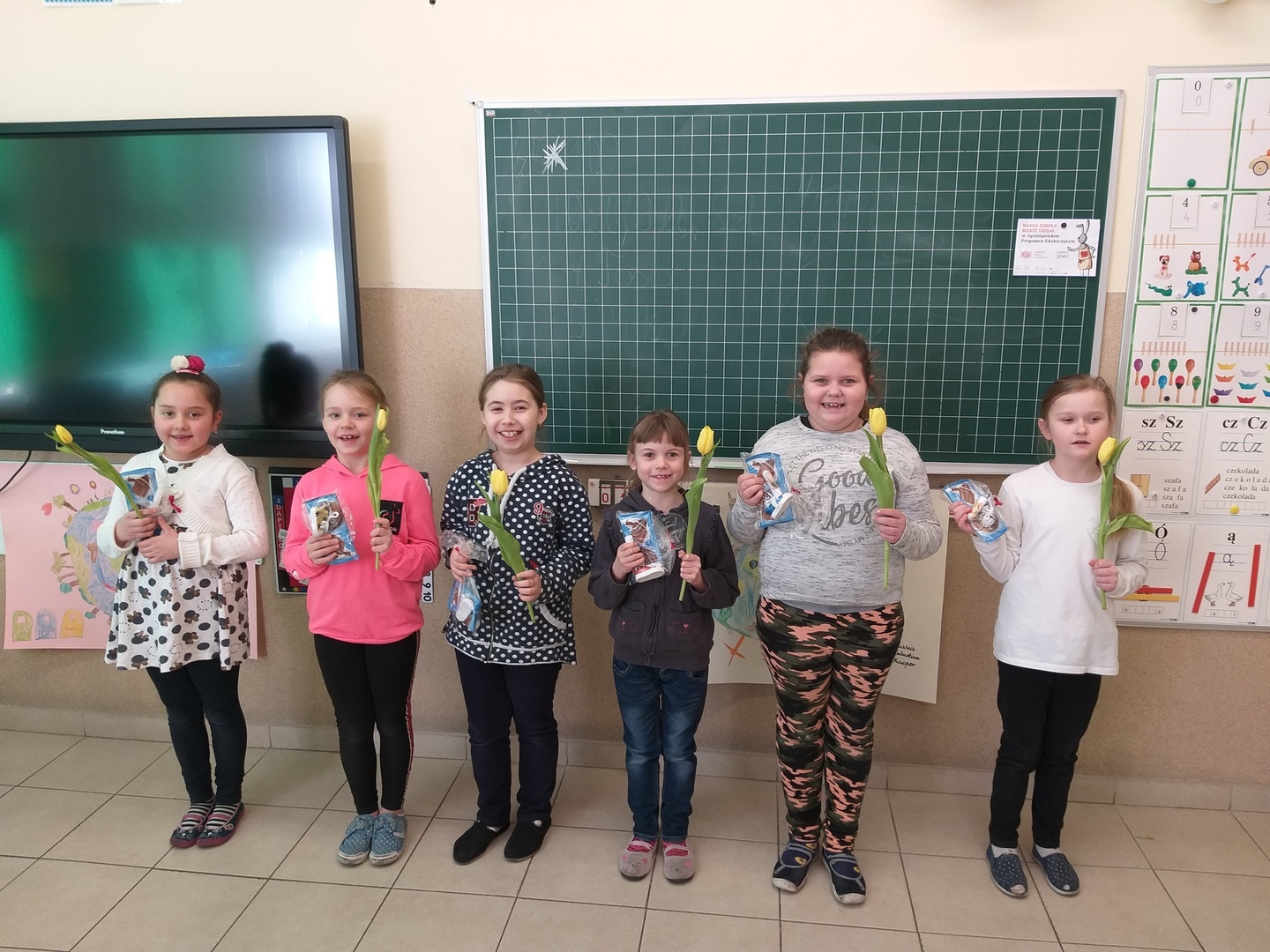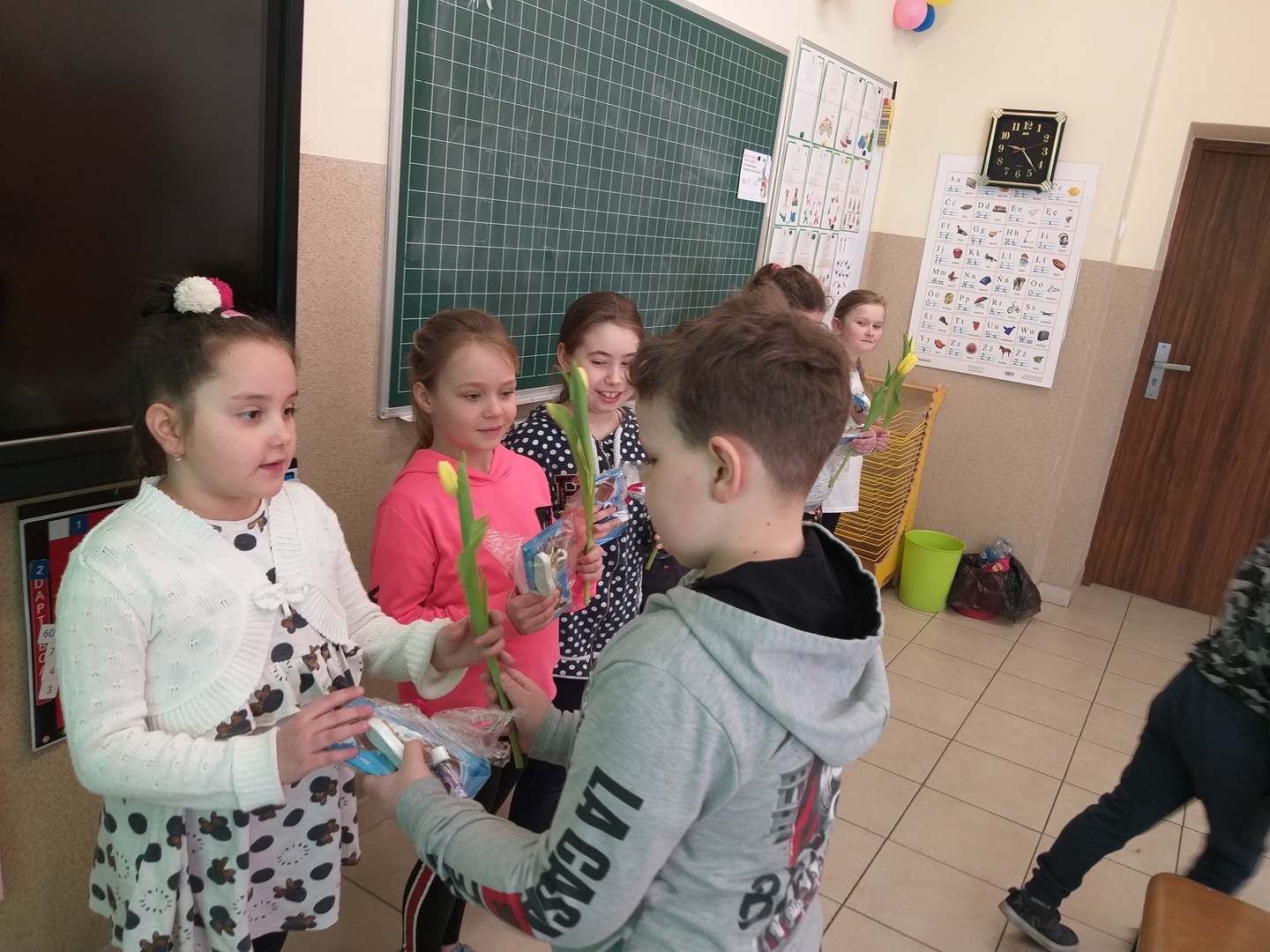 Dnia 8 marca w klasie I odbył się Dzień Kobiet. Chłopcy w tym ważnym dla dziewczynek dniu zaśpiewali im "Sto lat" oraz rozdali po pięknym żółtym tulipanie i słodkim upominku. Następnie wszyscy wspólnie stworzyli atmosferę kina w sali i przy słonych przekąskach oglądali ulubione bajki.