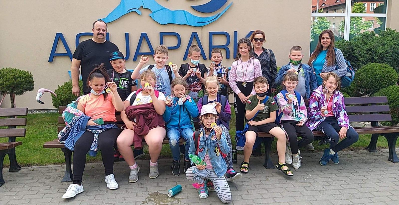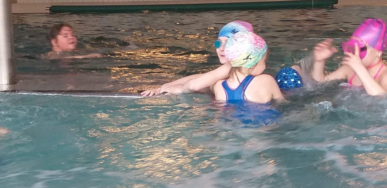 Nasi uczniowie zdobywali umiejętność pływania dzięki pani Beacie Kawalerczyk. Bezpiecznie dowoził ich pan Eligiusz Wachowiak, a nad bezpieczeństwem małych pływaków w czasie podróży czuwała Pani Maria Gaszyńska. Serdecznie dziękujemy za wszystko.