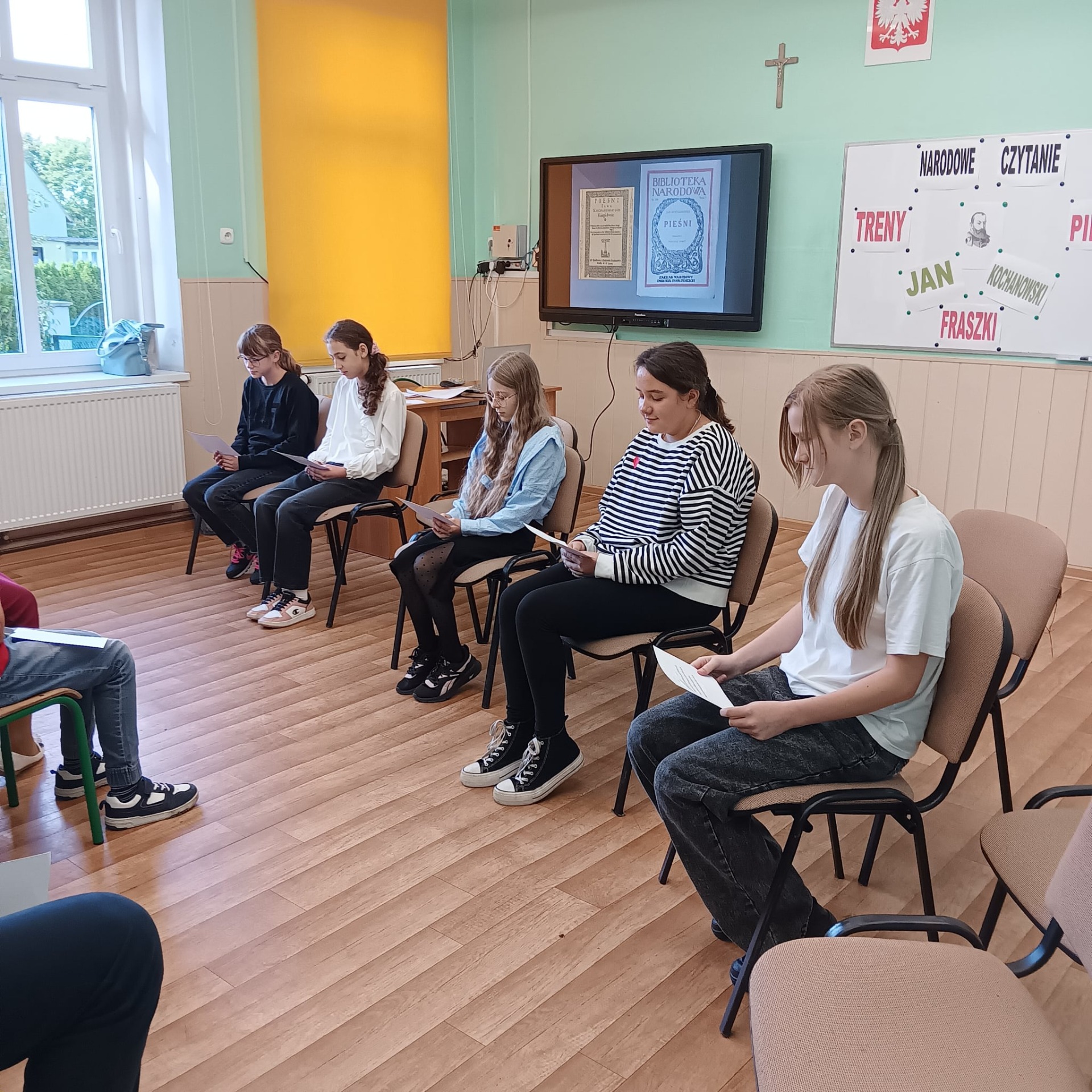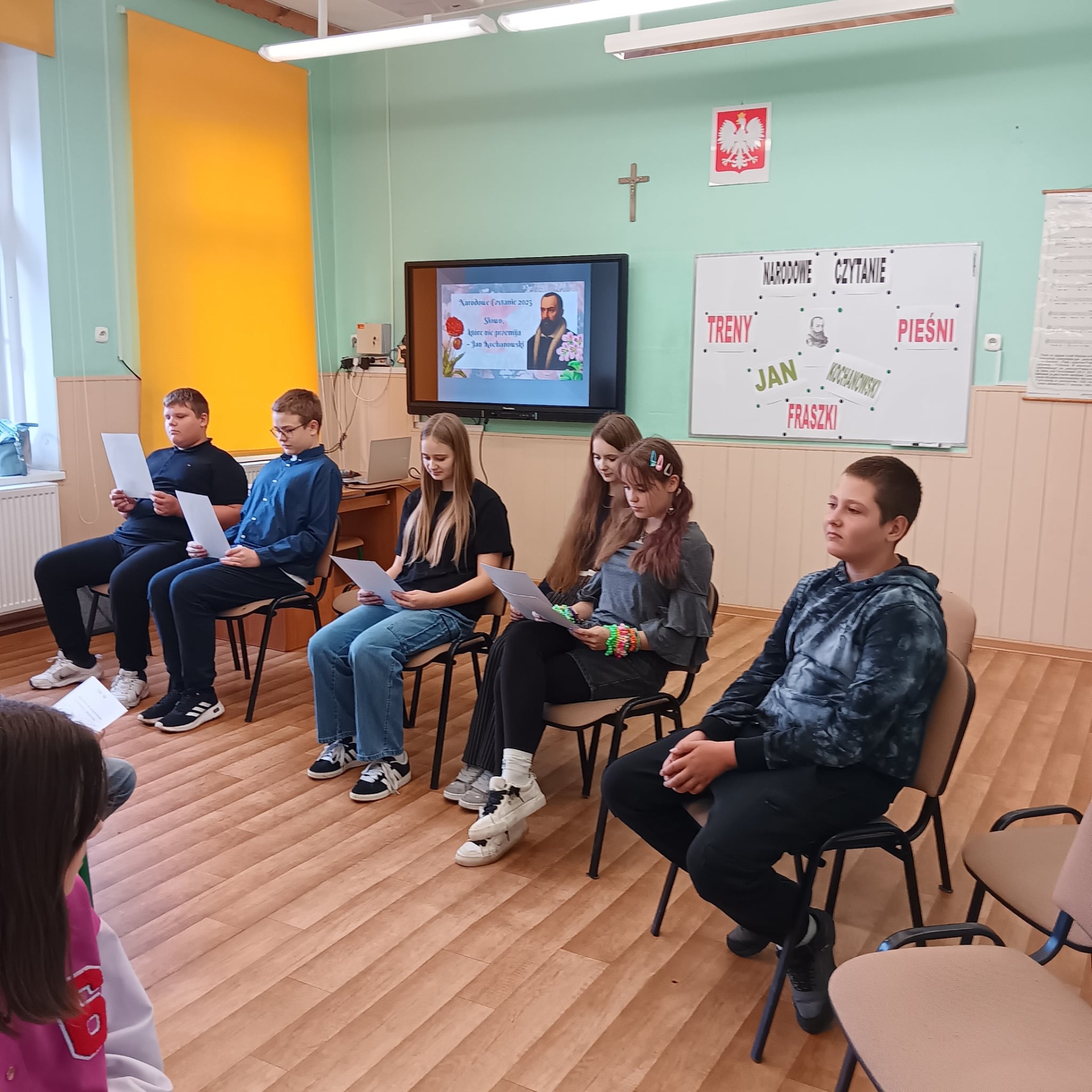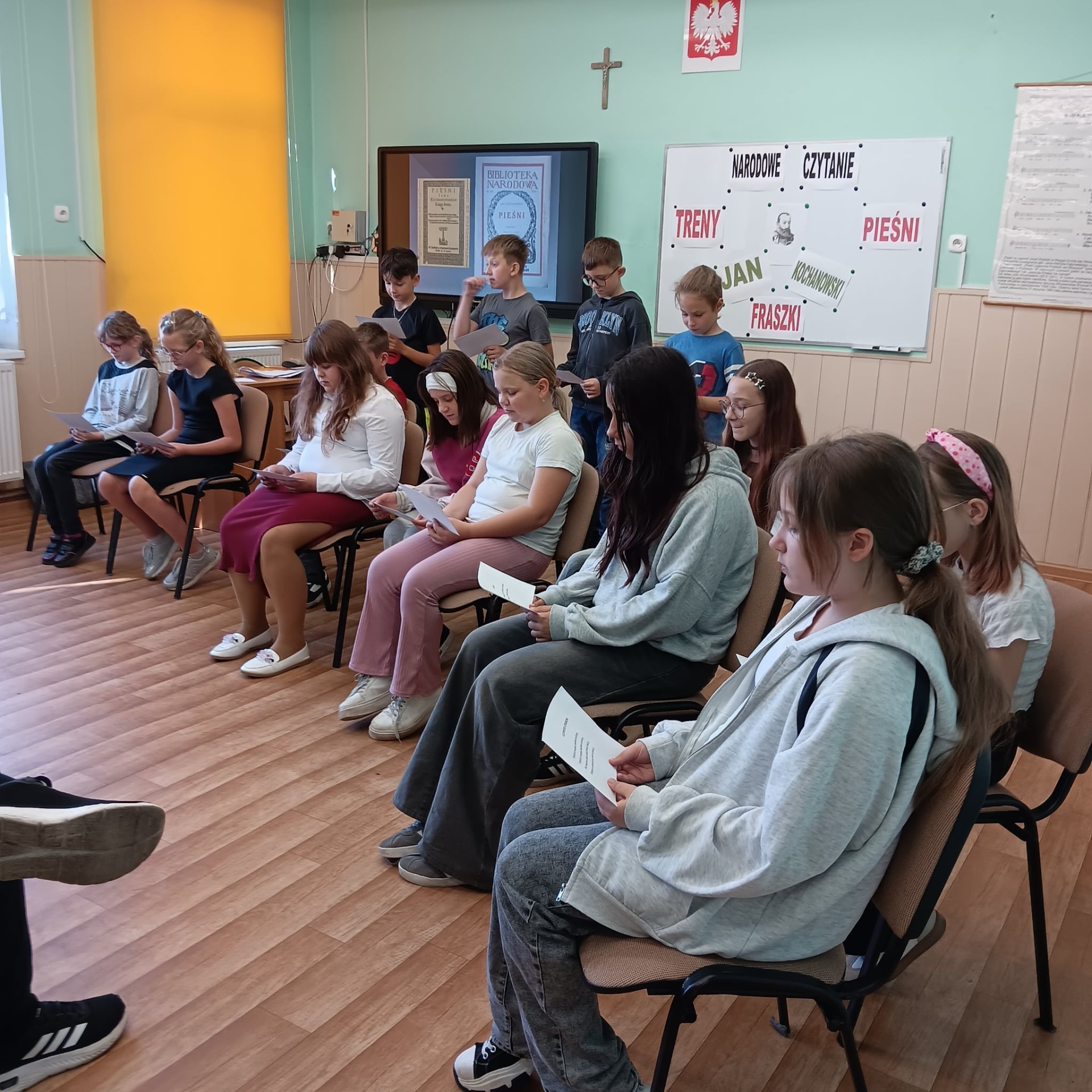 19 września uczniowie klas starszych uczestniczyli w tym niezwykłym wydarzeniu. W tym roku szkolnym udział wzięły wszystkie dzieci z klas IV – VII. Po krótkiej prezentacji, przedstawiającej życie i twórczość Jana Kochanowskiego, uczniowie klasy VII zaprezentowali treny I, V, VII i VIII. Następnie klasa VI, w dwóch grupach, zapoznała nas z treścią pieśni XXV i IX. Na zakończenie dzieci z klas IV i V odczytały fraszki: „O żywocie ludzkim”, „Na lipę”, „Na zdrowie”, ”Na starość” i „Na młodość”. Serdecznie podziękowania dla wszystkich uczestników za ogromne zaangażowanie i pracę włożoną w przygotowanie czytania tych nie najłatwiejszych tekstów. Uroczystość przygotowała i przeprowadziła pani Lucyna Socha.