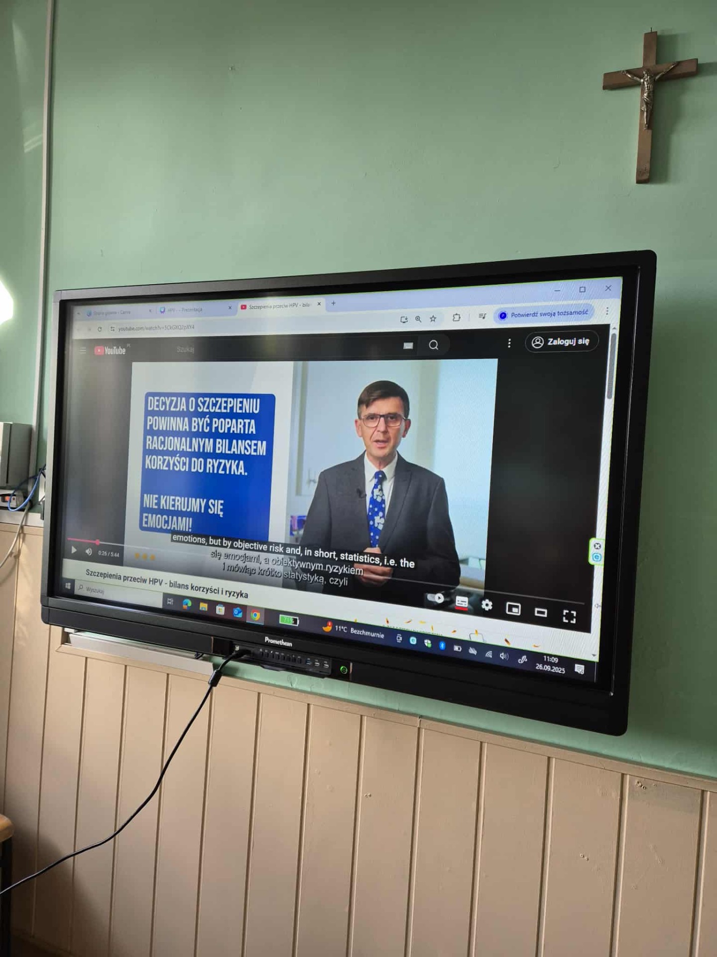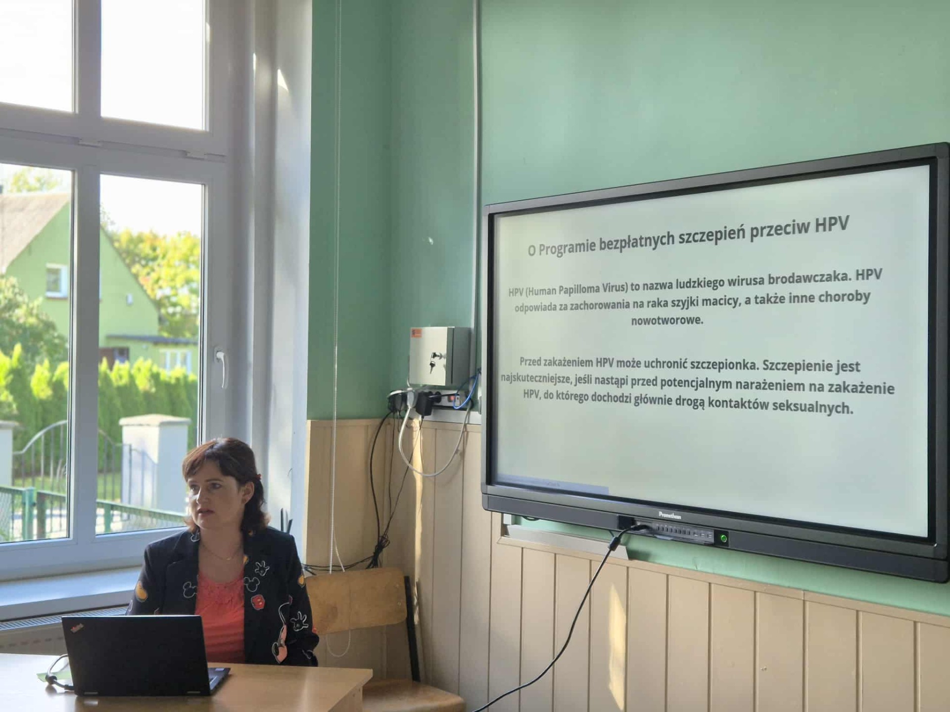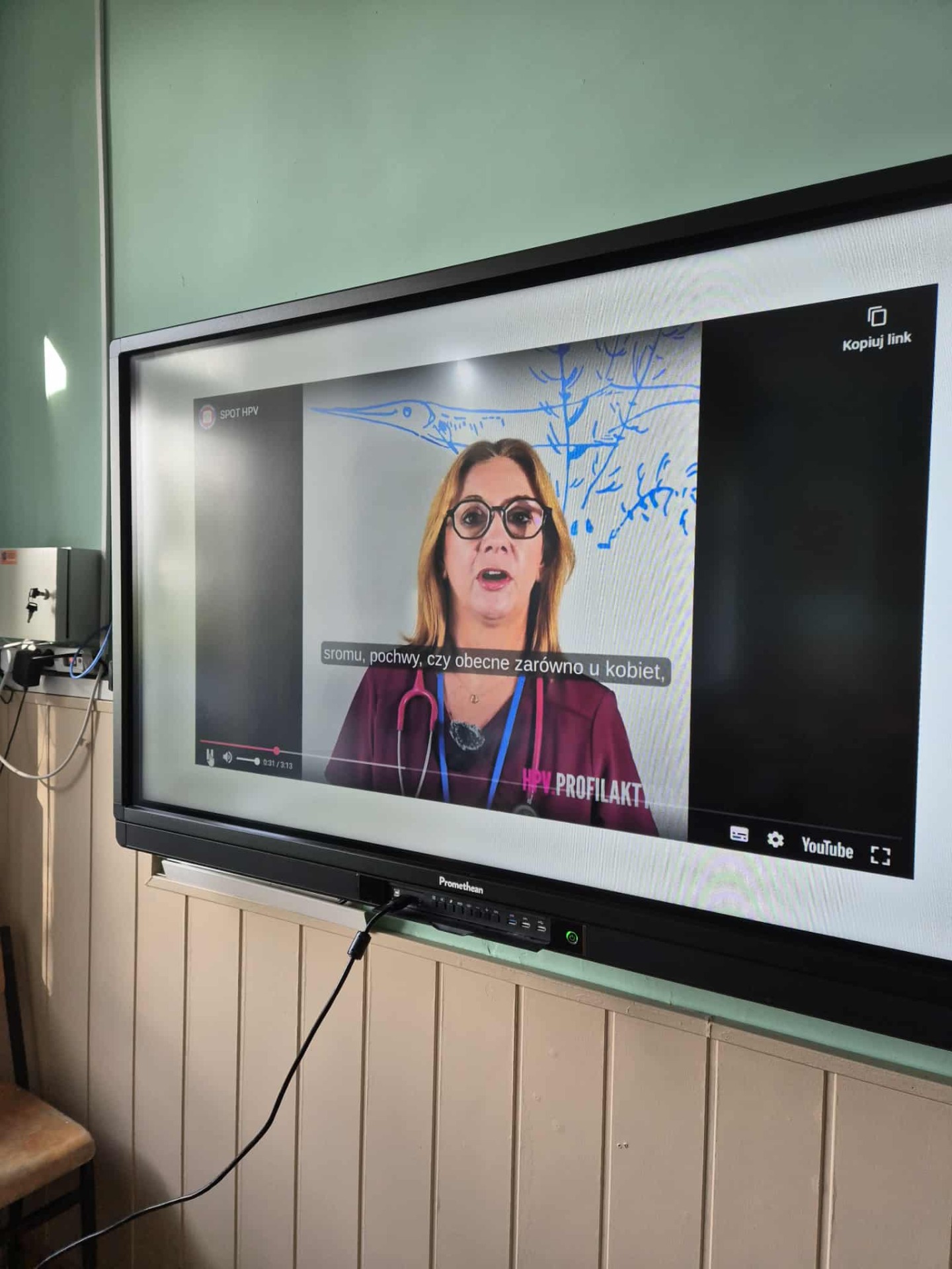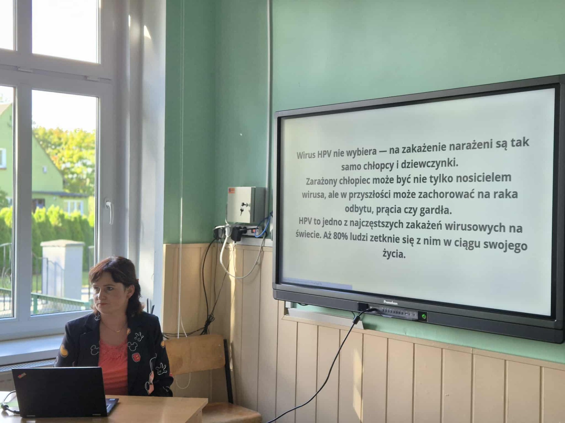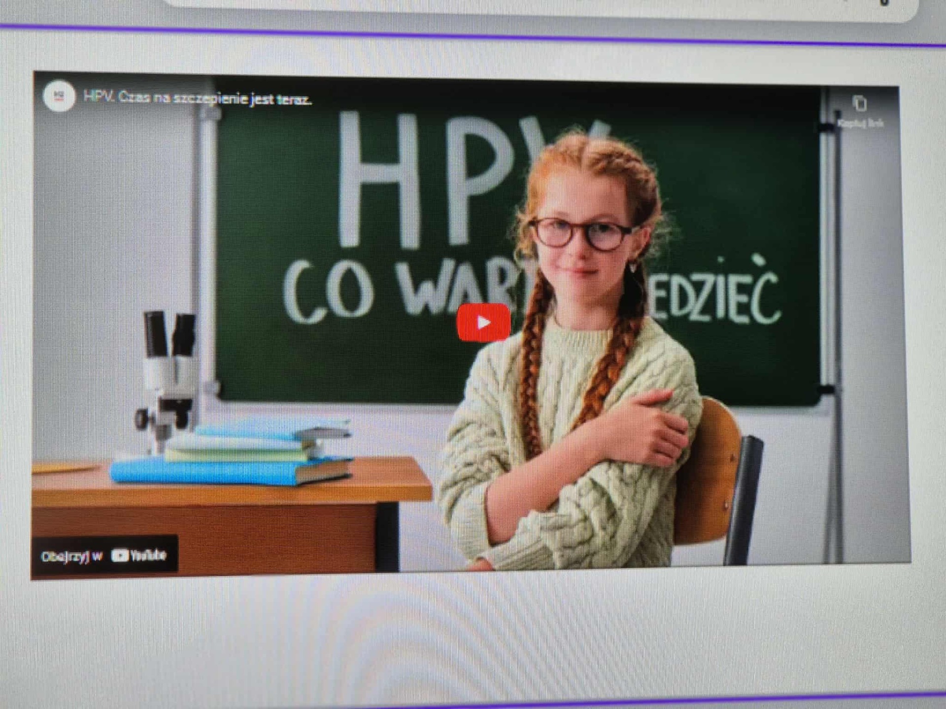 Dbając o dostateczną wiedzę w zakresie szczepień przeciw wirusowi HPV dzisiejsza lekcja wychowawcza z pedagogiem dotyczyła właśnie tego tematu. Zgromadzeni uczniowie klas III - VII zostali zapoznani ze skutkami zarażenia się wirusem HPV oraz charakterystyką chorób i powikłań, które on powoduje. Następnie, po wprowadzeniu teoretycznym obejrzeliśmy filmy edukacyjne rekomendowane przez Ministerstwo Zdrowia, które w rzetelny sposób przedstawiły medyczny punk widzenia szczepień przeciw wirusowi HPV oraz bilans ryzyka i korzyści płynących ze szczepienia. Wszystko po to, aby każdy uczeń mógł w zaciszu domowym rozważyć tę kwestię ze swoim rodzicem/opiekunem. Podsumowaniem zajęć był quiz wiedzy sprawdzający uważność uczniów podczas prowadzonych zajęć! Prelekcja poprowadzona była w tonie świadomego wyboru. HPV - czas na szczepienie jest teraz, a decyzja jest nadal po Twojej stronie!