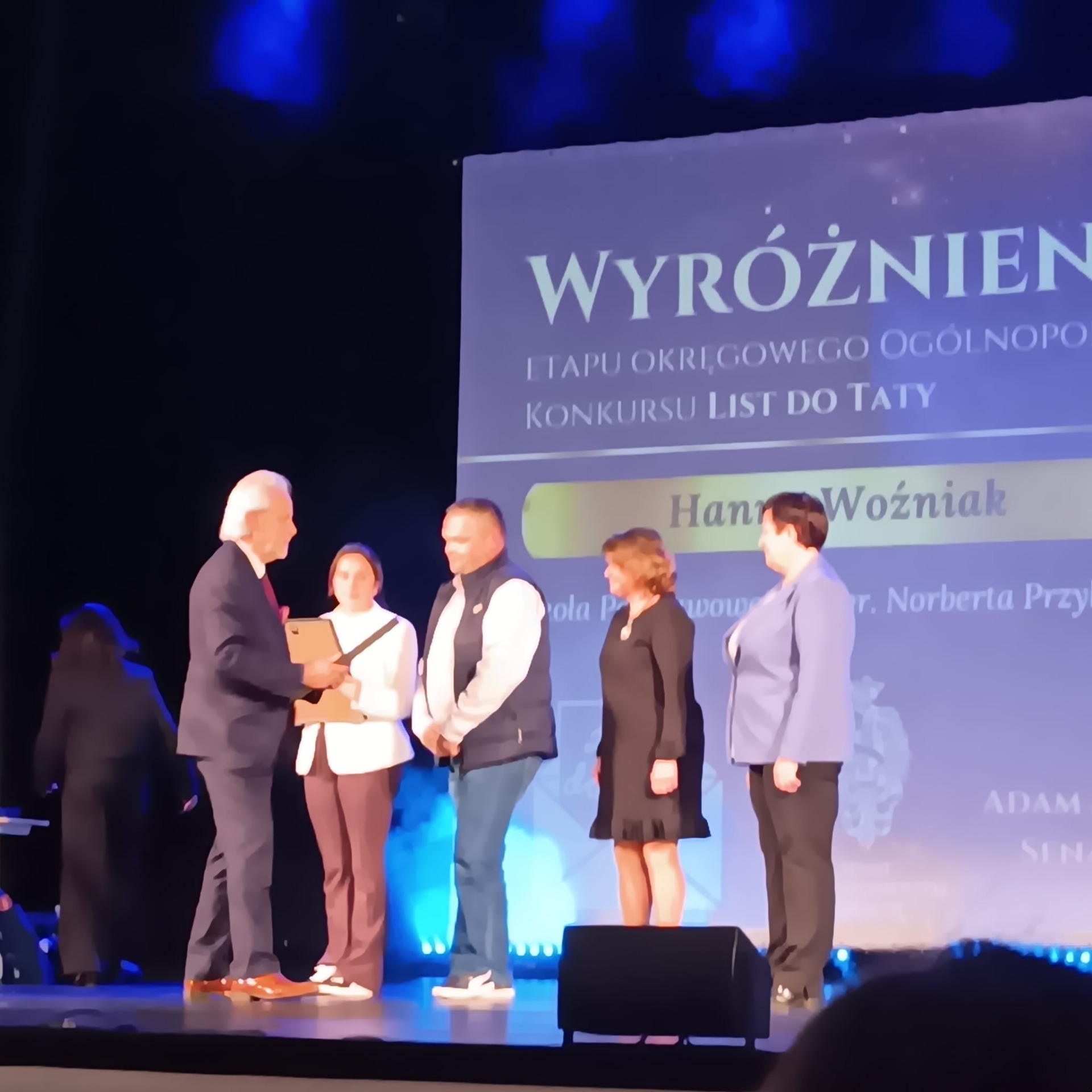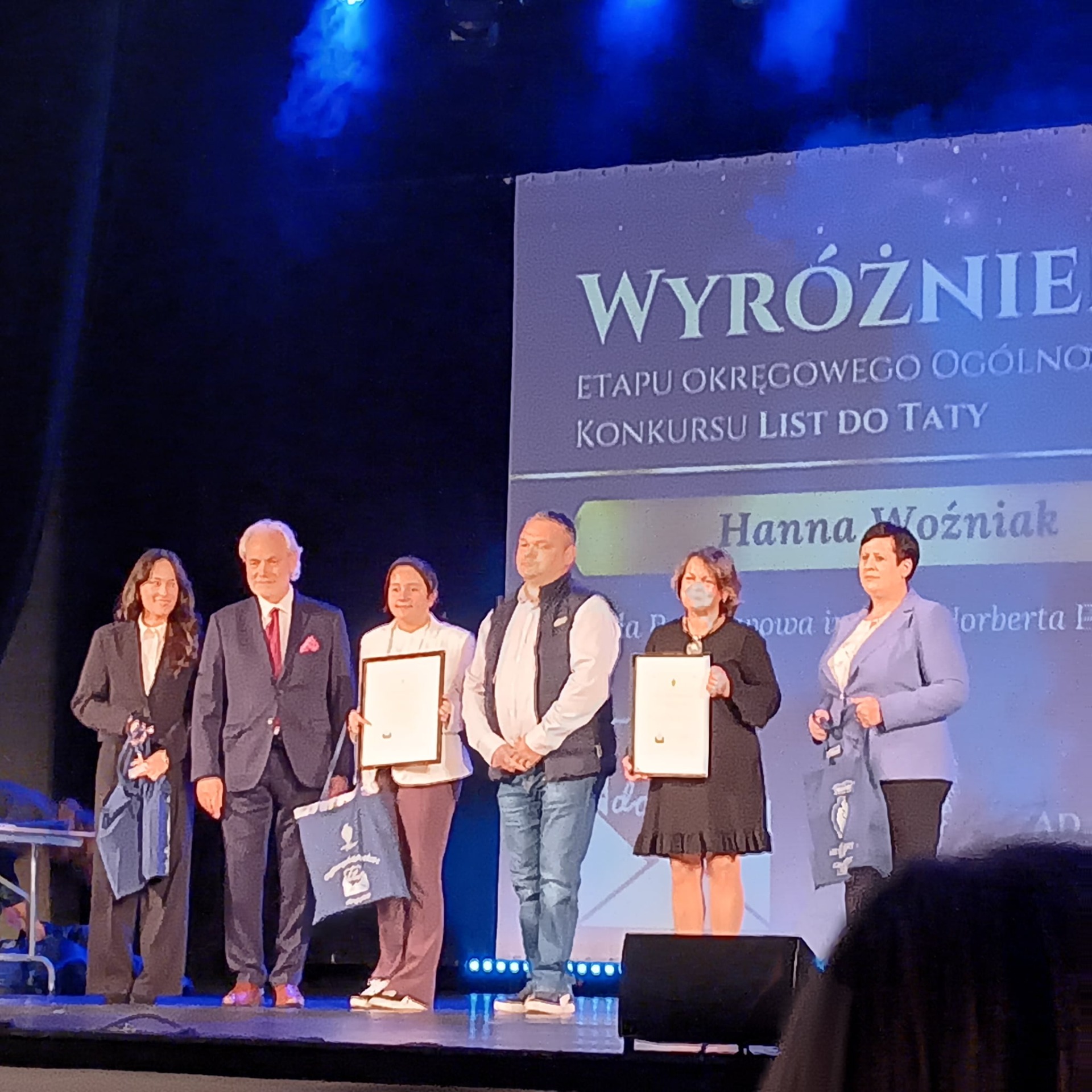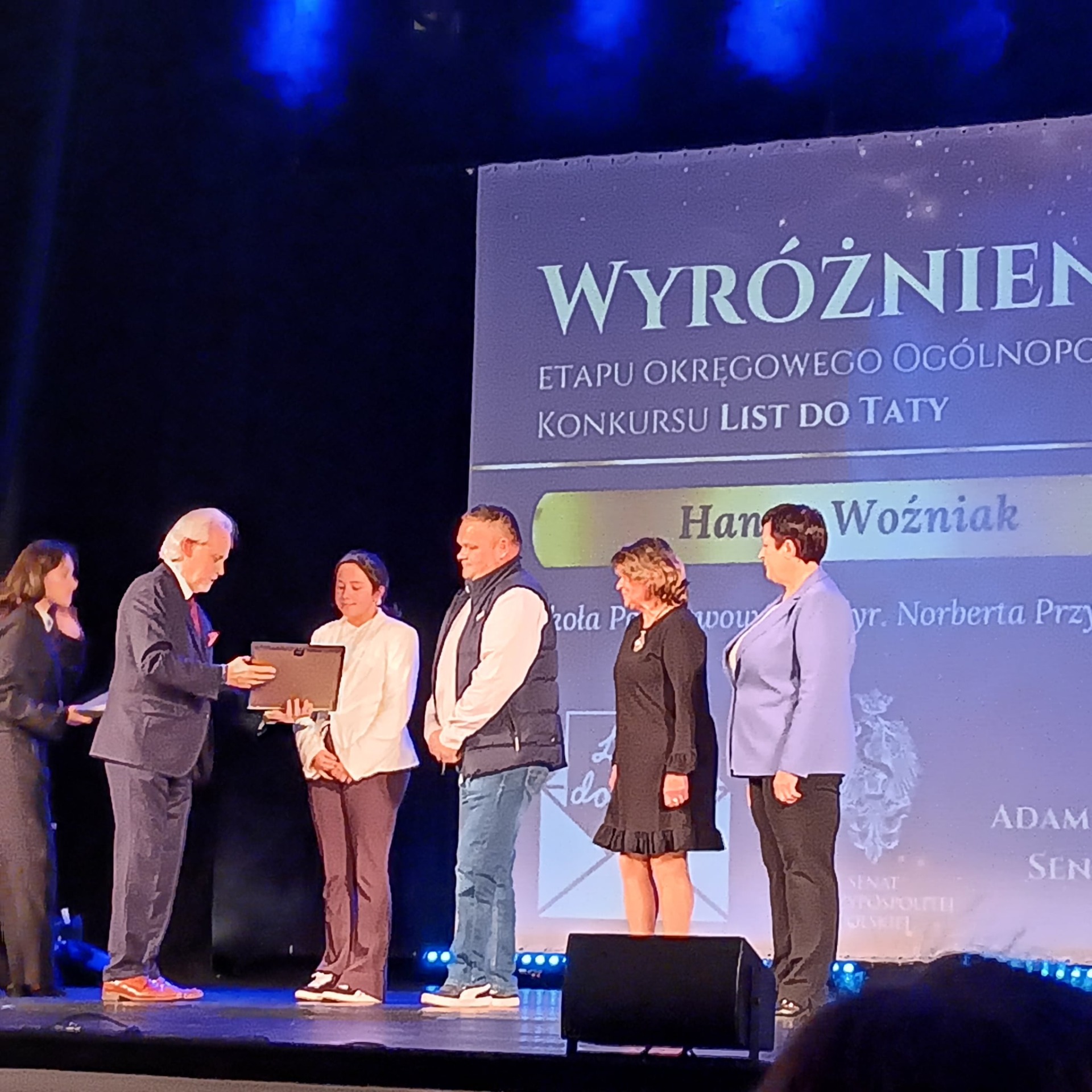 29 września uczennice naszej szkoły wzięły udział w Gali Finału Okręgowego Ogólnopolskiego Konkursu „List do taty”, który został zorganizowany przez Senacką Komisję Rodziny, Polityki Senioralnej i Społecznej. Emilia Deleżuch z klasy V, Katarzyna Owecka i Nikola Sobańska, obie z klasy VI, otrzymały za udział pamiątkowe dyplomy i drobne upominki. Hanna Woźniak z klasy VI została uhonorowana wyróżnieniem. Ona i jej tata, Pan Rafał Woźniak, dostali dyplomy, podziękowania i upominki. Została też doceniona praca Pani Dyrektor Krystyny Janowiak oraz opiekunki i szkolnego koordynatora konkursu pani Lucyny Socha. Gala przebiegła w bardzo uroczystej atmosferze. Serdeczne podziękowania dla wszystkich, którzy przyczynili się do osiągnięcia tego niecodziennego sukcesu.