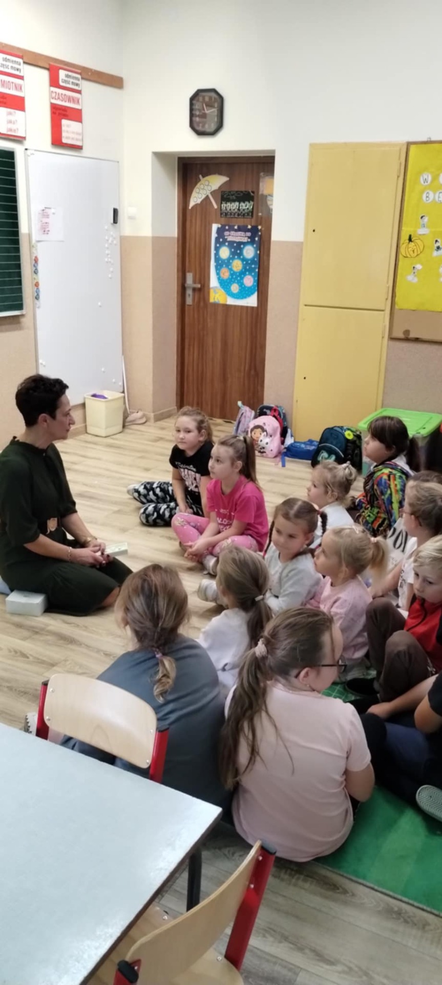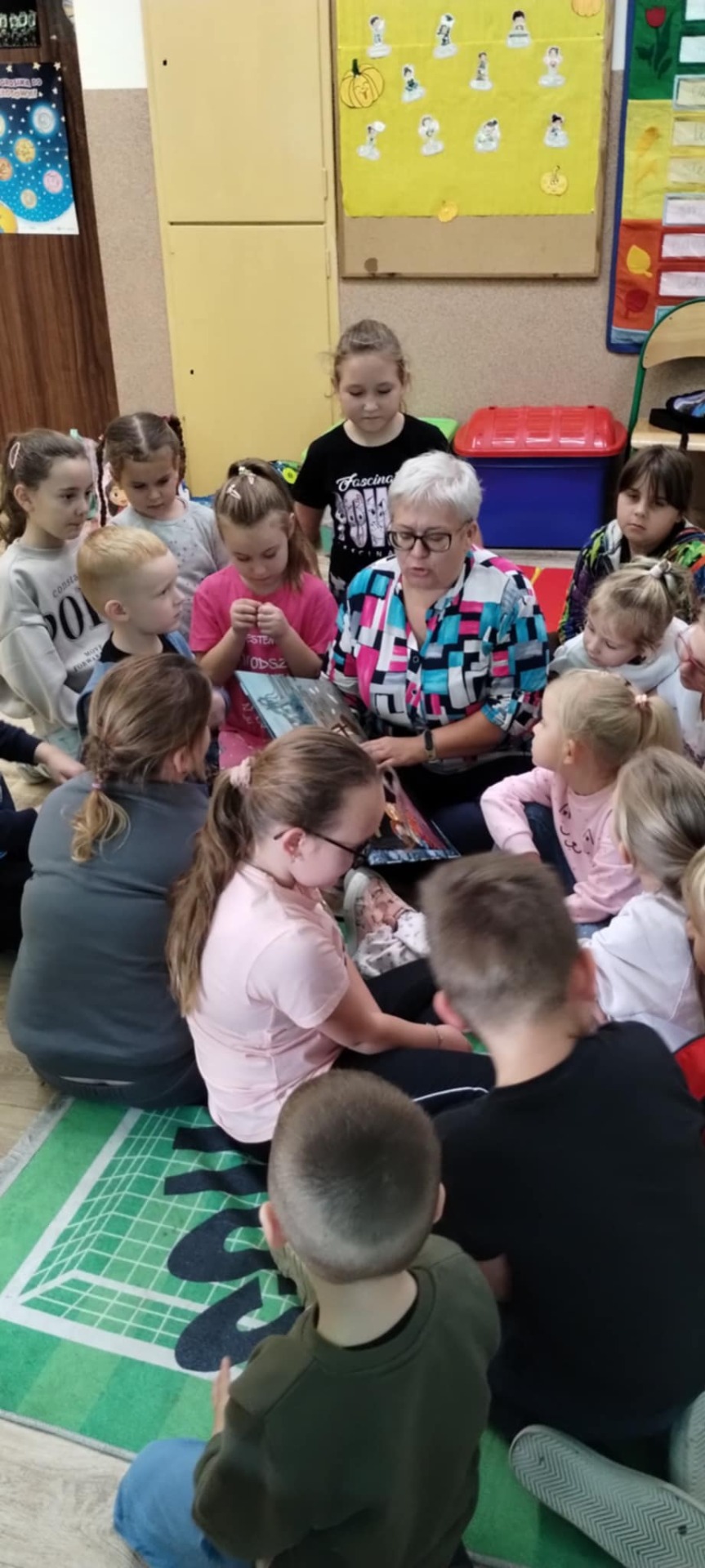 W środę 22 października odbyło się spotkanie czytelnicze w naszym przedszkolu. Na zaproszenie biblioteki szkolnej przybyła do nas pani Dyrektor Biblioteki Powiatowej w Wągrowcu Elżbieta Rożnowska wraz z bibliotekarką panią Renatą Wójcik. Panie w oryginalny sposób przybliżyły dzieciom informacje na temat różnych książek. Dzieci angażowały się w zabawę i chętnie słuchały czytanej lektury. Przedszkolaki były aktywne i zadowolone z udziału w wydarzeniu. Spotkanie z książką to okazja do wspierania rozwoju językowego, społecznego i emocjonalnego, a także budowania pozytywnego stosunku do czytania. Zajęcia odbyły się w ramach udziału naszej biblioteki w "Narodowym Programie Rozwoju Czytelnictwa". Z tego programu książnica szkolna otrzymała dofinansowanie na zakup książek. M. Niezgoda