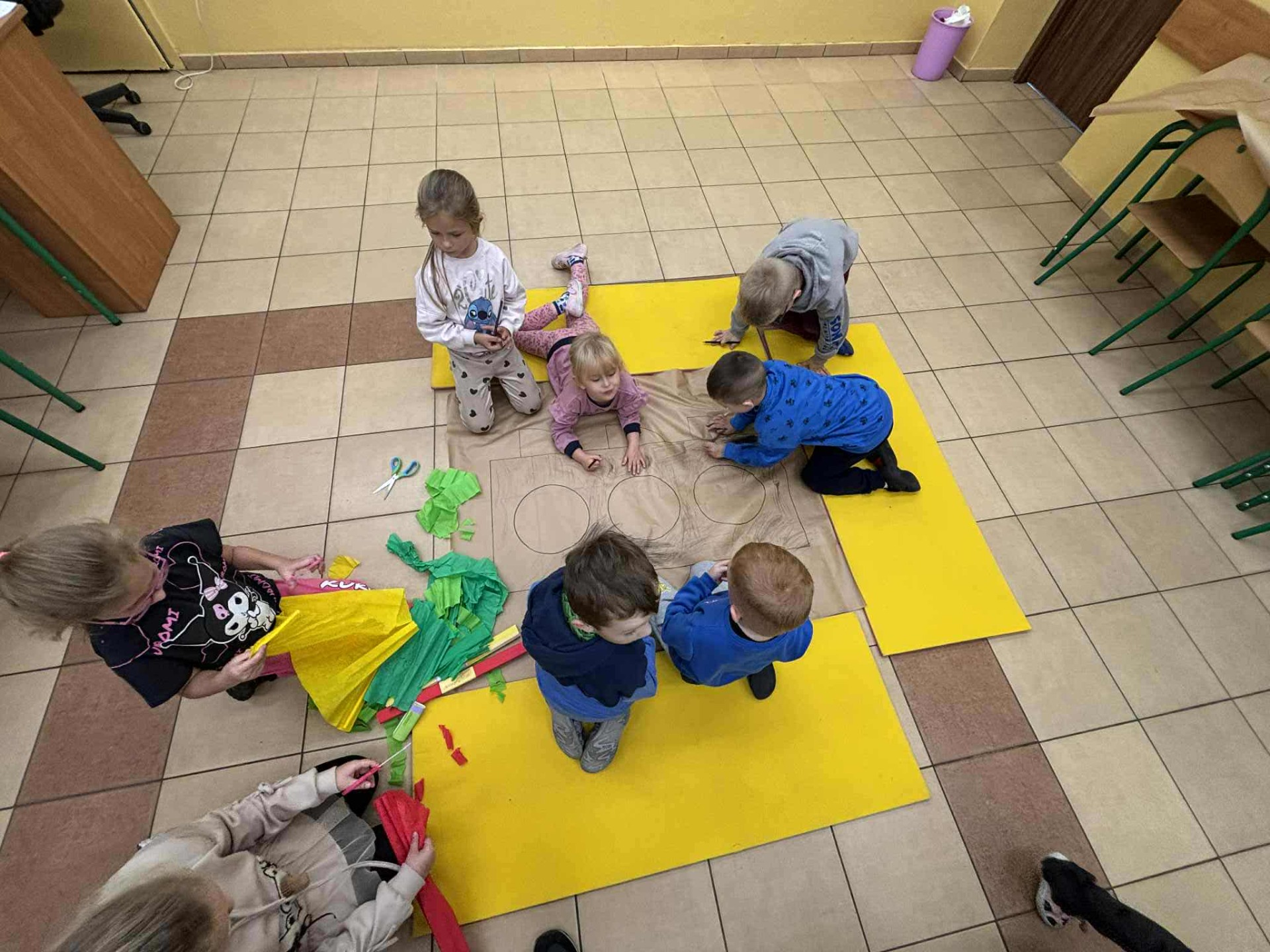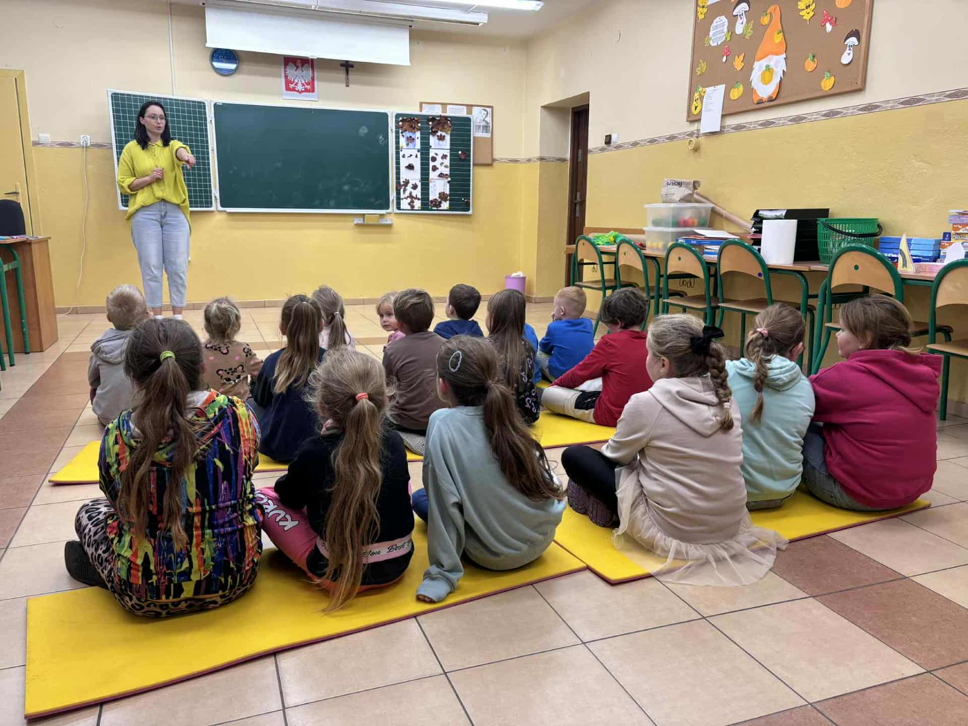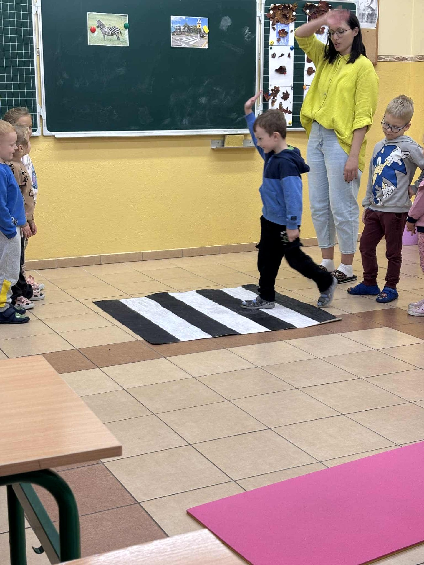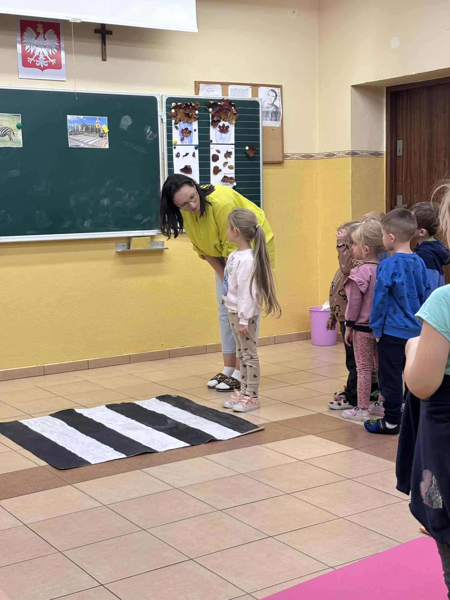 Dnia 24.10.25r. klasa III zaprosiła oddział przedszkolny i klasę I na lekcję o bezpieczeństwie na drodze. Dziewczynki z klasy trzeciej przygotowały krótką inscenizację związaną z ruchem drogowym oraz piosenkę "Bezpieczna droga". Własnoręcznie wykonały opaski do inscenizacji oraz stworzyły pasy, które pomogły wszystkim poćwiczyć prawidłowe przechodzenie przez jezdnię. Lekcja przebiegła nam w radosnej i tanecznej atmosferze.
