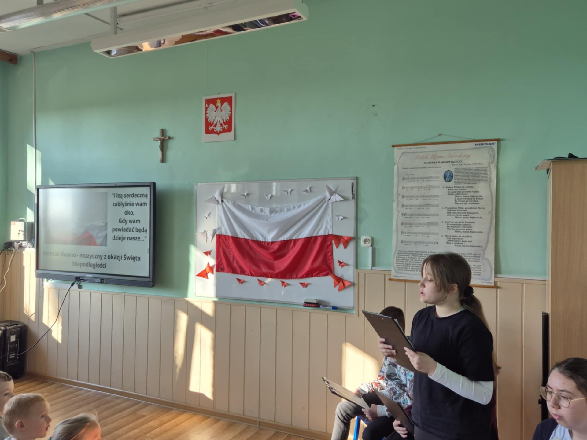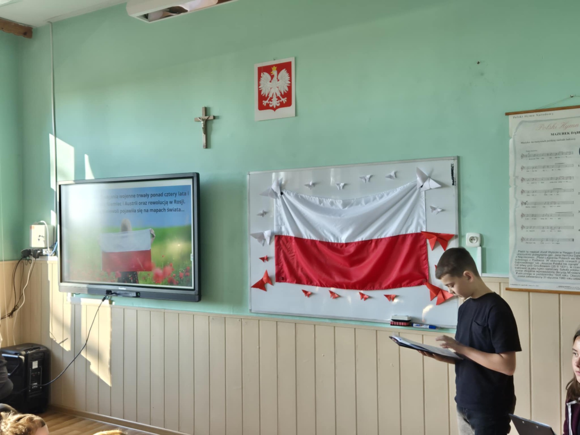 "I łzą serdeczną zabłysnąć wam oko, gdy wam powiadać będą dzieje nasze..." Pod takim hasłem uczniowie Szkoły Podstawowej w Smogulcu świętowali kolejną Rocznicę Odzyskania Niepodległości przez Polskę. Obchody Święta Niepodległości rozpoczęły się uroczystym apelem - montażem slowno - muzycznym upamiętniającym najważniejsze wydarzenia z dziejów walki o wolność Naszego kraju. Po oficjalnych uroczystościach przyszedł czas na sportowe zmagania wszystkich uczniów Naszej szkoły. Tradycyjnie, z okazji Święta Niepodległości, zorganizowany został uroczysty "Bieg dla Niepodledłej", w którym udział wzięli zarówno przedszkolaki, jak i starsi uczniowie naszej szkoły. Z opaskami w barwach narodowych oraz flagami w rękach, ku czci wolnej Polski i upamiętnienia wydarzeń historycznych, wszyscy uczniowie podjęli sportowe zmagania. Obchody zakończyły się smacznym poczęstunkiem - symbolicznym rogalem swiętomarcińskim oraz ciepłym hot - dogiem (przygotowanym przez panie z obsługi), który zregenerował siły uczniów po sportowych zmaganiach. Za przygotowanie tegorocznych obchodów Święta Niepodległości odpowiedzialni byli p. Paulina Dzięciołowska, p. Mariusz Dzięciołowski oraz p. Dyrektor Krystyna Janowiak.