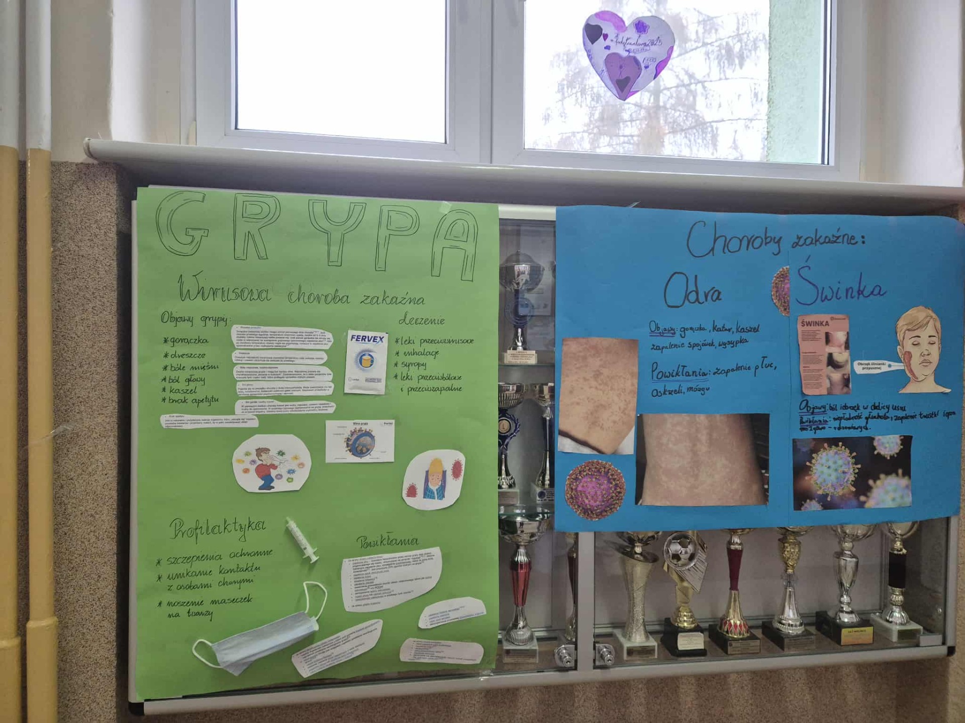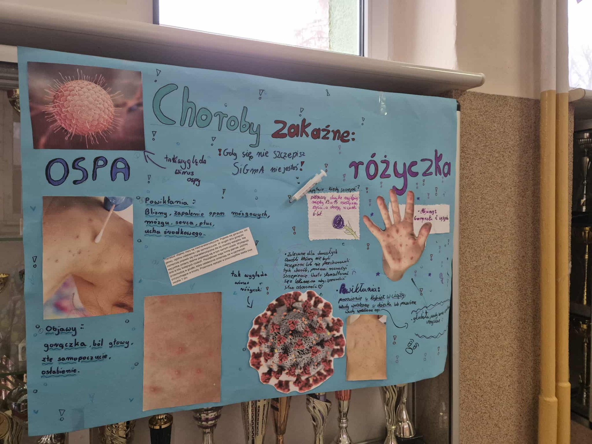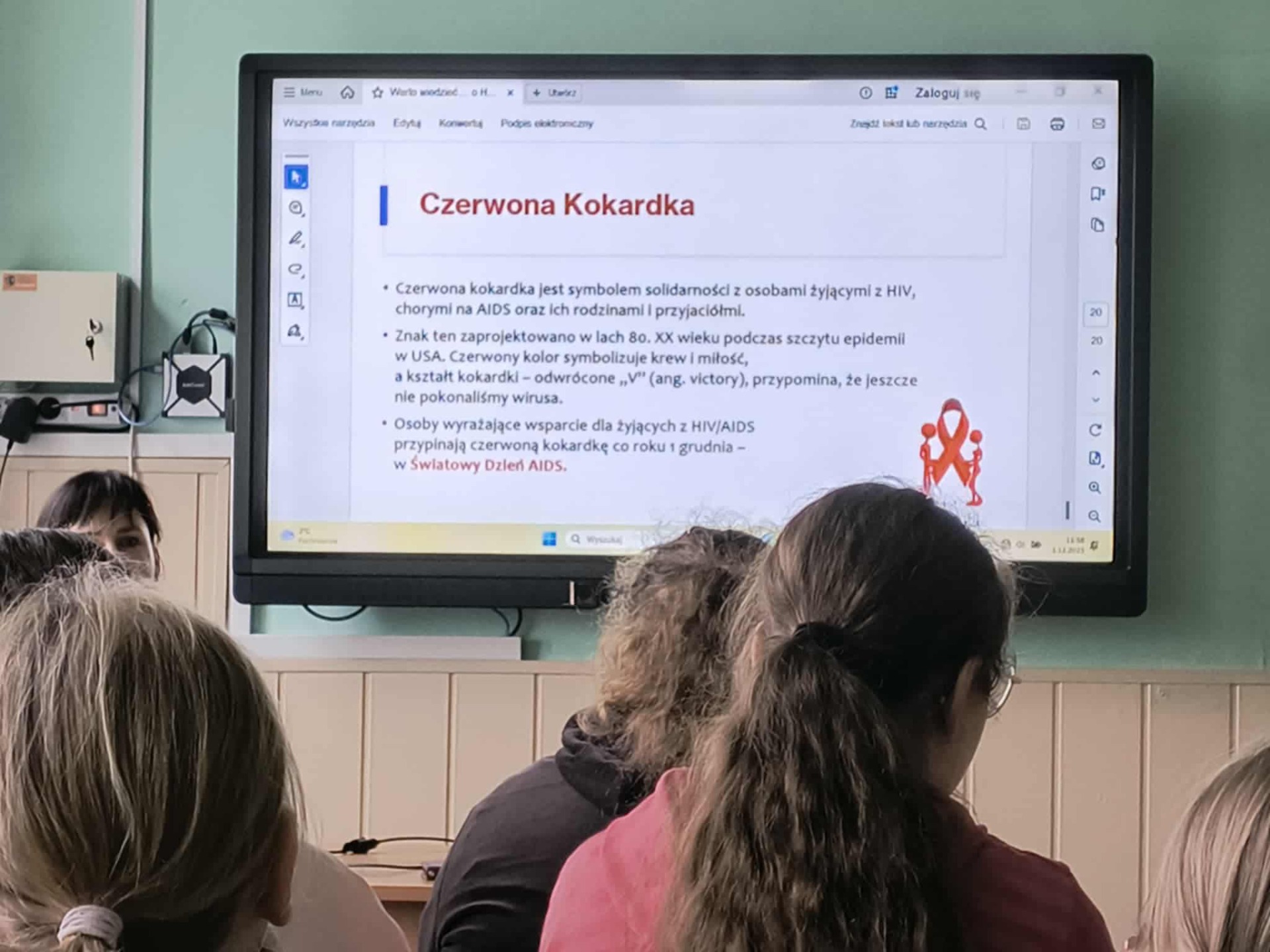 Każdego roku, pierwszego dnia miesiąca grudnia, z inicjatywy Światowej Organizacji Zdrowia, obchodzony jest Dzień Walki z AIDS. Jest to doskonała okazja by porozmawiać na ten temat oraz okazać solidarność osobom zarażonym wirusem HIV oraz dotkniętym AIDS. Dziś także i w Naszej szkole spotkaliśmy się na lekcji wychowawczej poswieconej temu zagadnieniu, a czerwone wstążeczki przypięte do naszych bluz i sweterków były symbolem naszej świadomości i wsparcia. Przy okazji spotkania z pedagogiem uczniowie poszczególnych klas, pod opieką swoich wychowawców, przygotowali plakaty informujace nas w tematyce innych, najczęstszych chorób wirusowych tj. grypa, żółtaczka, ospa, różyczka, odra i świnka. Inicjatorem spotkania i obchodów Światowego Dnia Walki z Aids była p. pedagog Paulina Dzięciołowska.