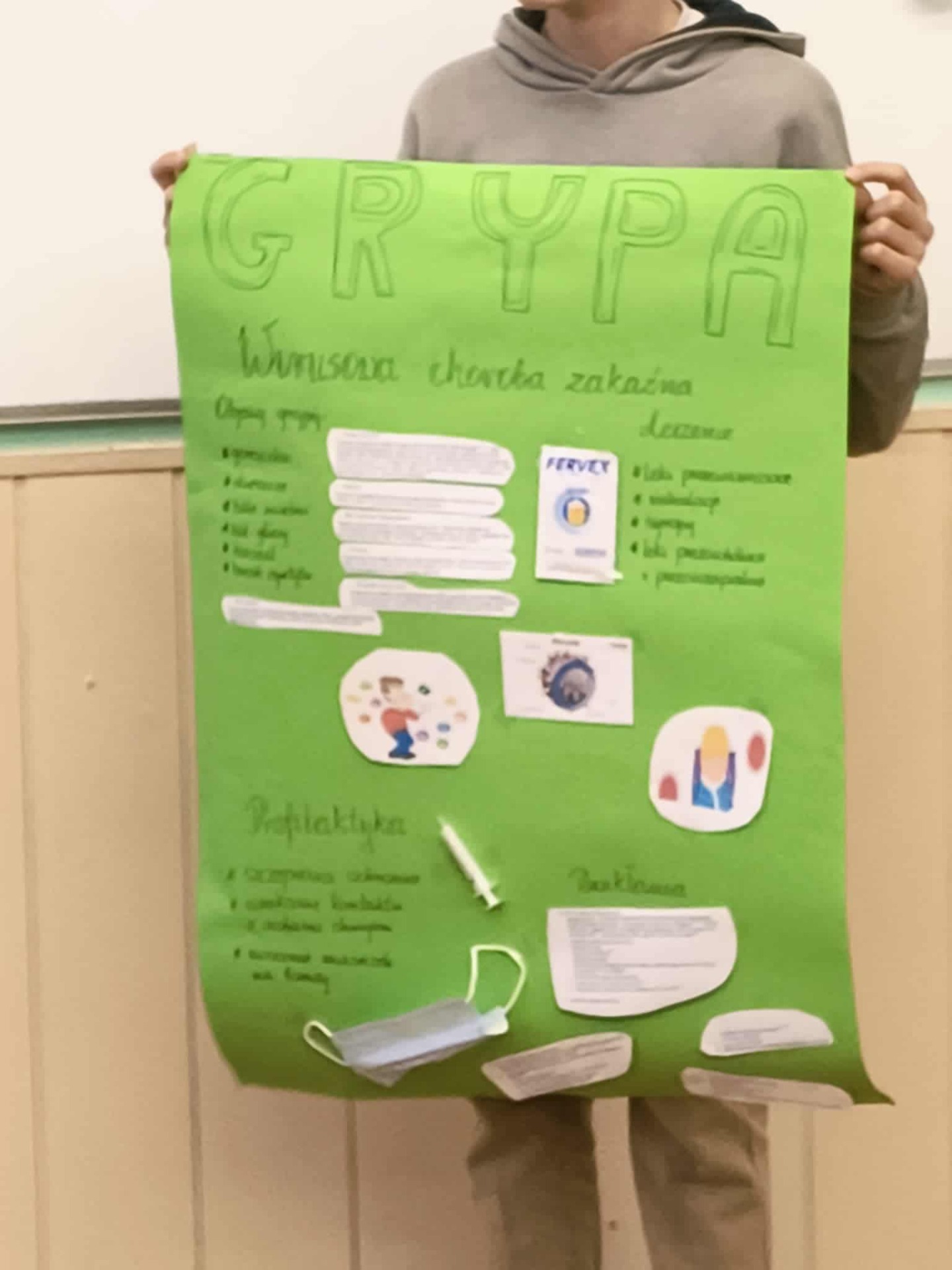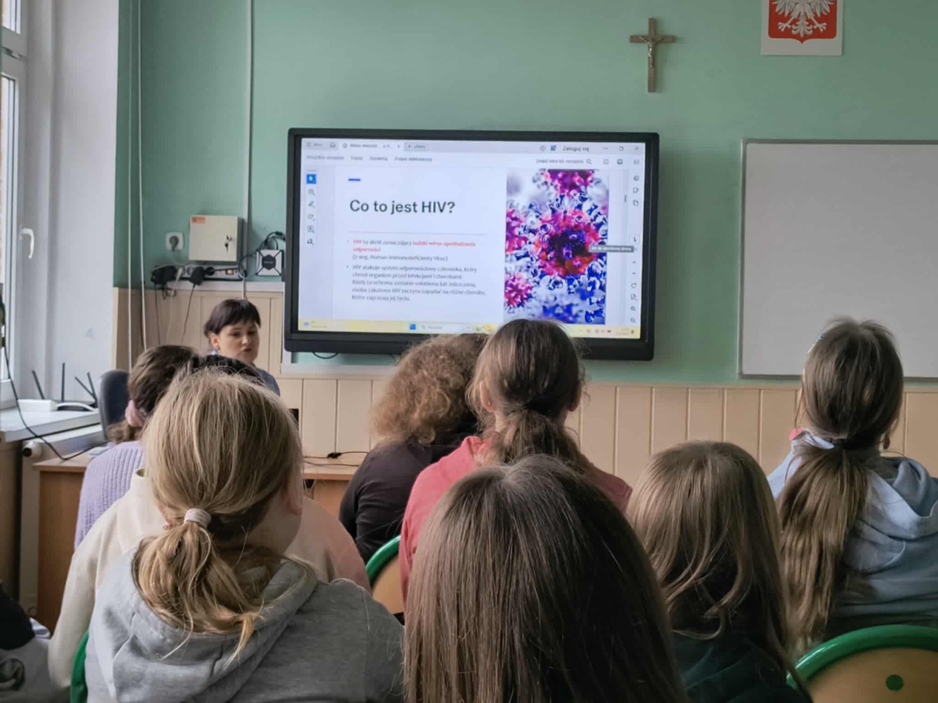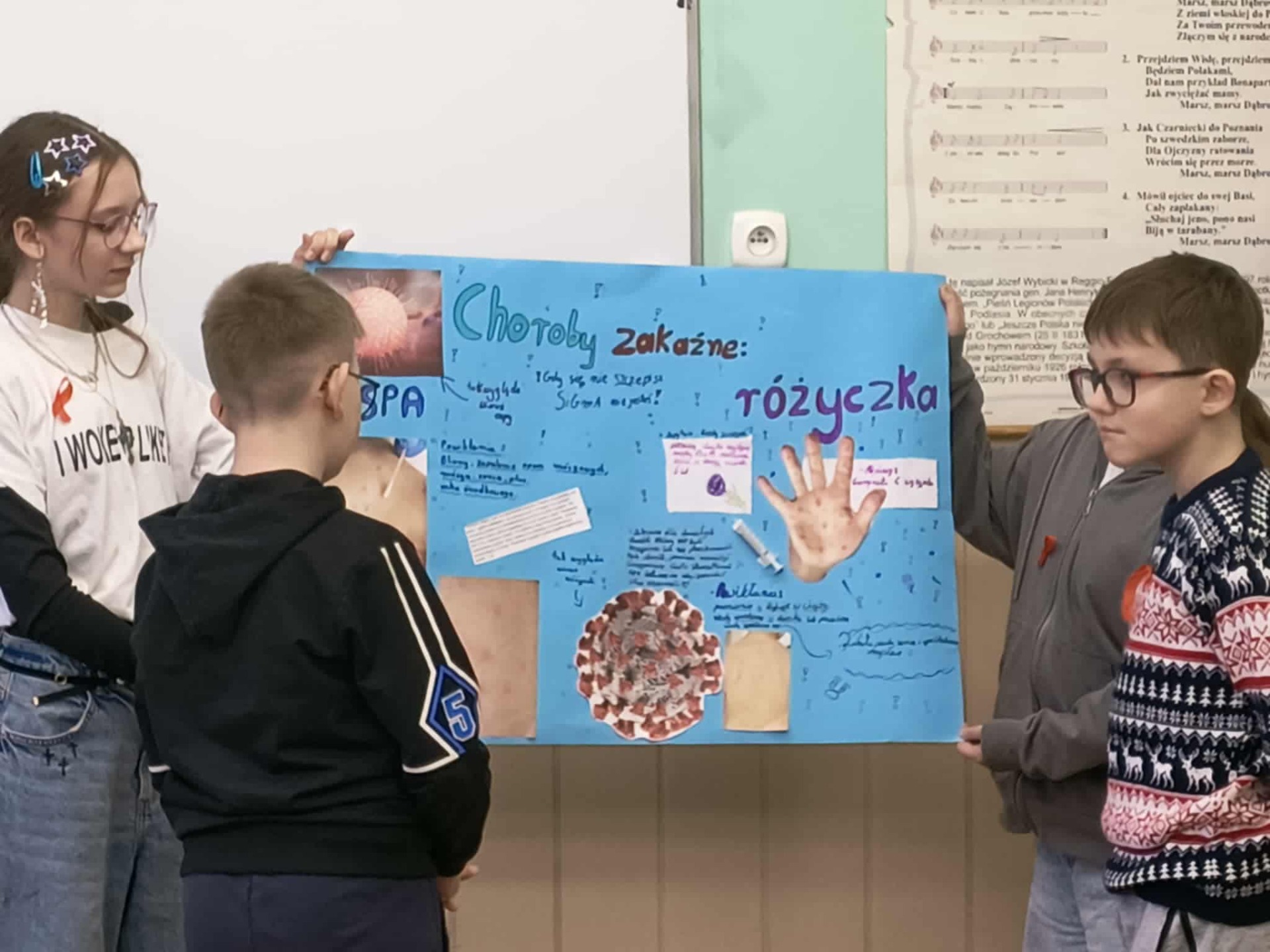Każdego roku, pierwszego dnia miesiąca grudnia, z inicjatywy Światowej Organizacji Zdrowia, obchodzony jest Dzień Walki z AIDS. Jest to doskonała okazja by porozmawiać na ten temat oraz okazać solidarność osobom zarażonym wirusem HIV oraz dotkniętym AIDS. Dziś także i w Naszej szkole spotkaliśmy się na lekcji wychowawczej poswieconej temu zagadnieniu, a czerwone wstążeczki przypięte do naszych bluz i sweterków były symbolem naszej świadomości i wsparcia. Przy okazji spotkania z pedagogiem uczniowie poszczególnych klas, pod opieką swoich wychowawców, przygotowali plakaty informujace nas w tematyce innych, najczęstszych chorób wirusowych tj. grypa, żółtaczka, ospa, różyczka, odra i świnka. Inicjatorem spotkania i obchodów Światowego Dnia Walki z Aids była p. pedagog Paulina Dzięciołowska.