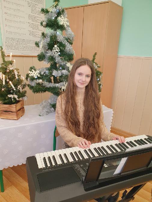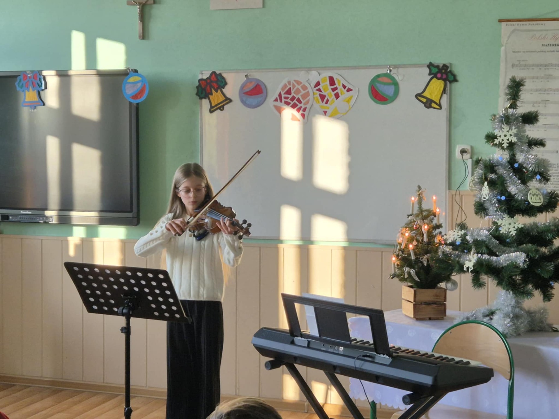 Zofia Ślipek na skrzypcach, Mikołaj Nawrocki na flecie poprzecznym, Kaja Kalka na ksylofonie, Tatiana Twardysko na keyboardzie (o brzmieniu pianina), Nikola Sobańska na skrzypcach i Sebastian Sandford na keyboardzie (o brzmieniu pianina). Wykonawcy zachwycili publiczność swoją grą na instrumentach, o czym świadczyły gromkie brawa. Cieszymy się z talentów wokalnych i talentów do gry na instrumentach. Koncert na długo pozostanie w pamięci uczestników.