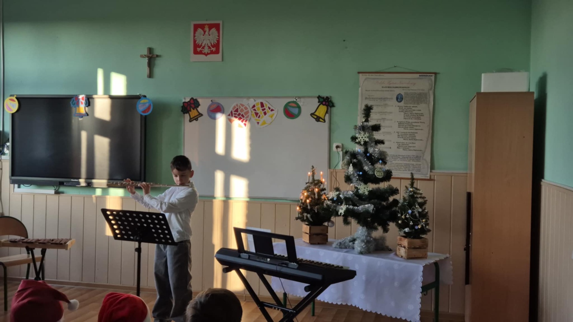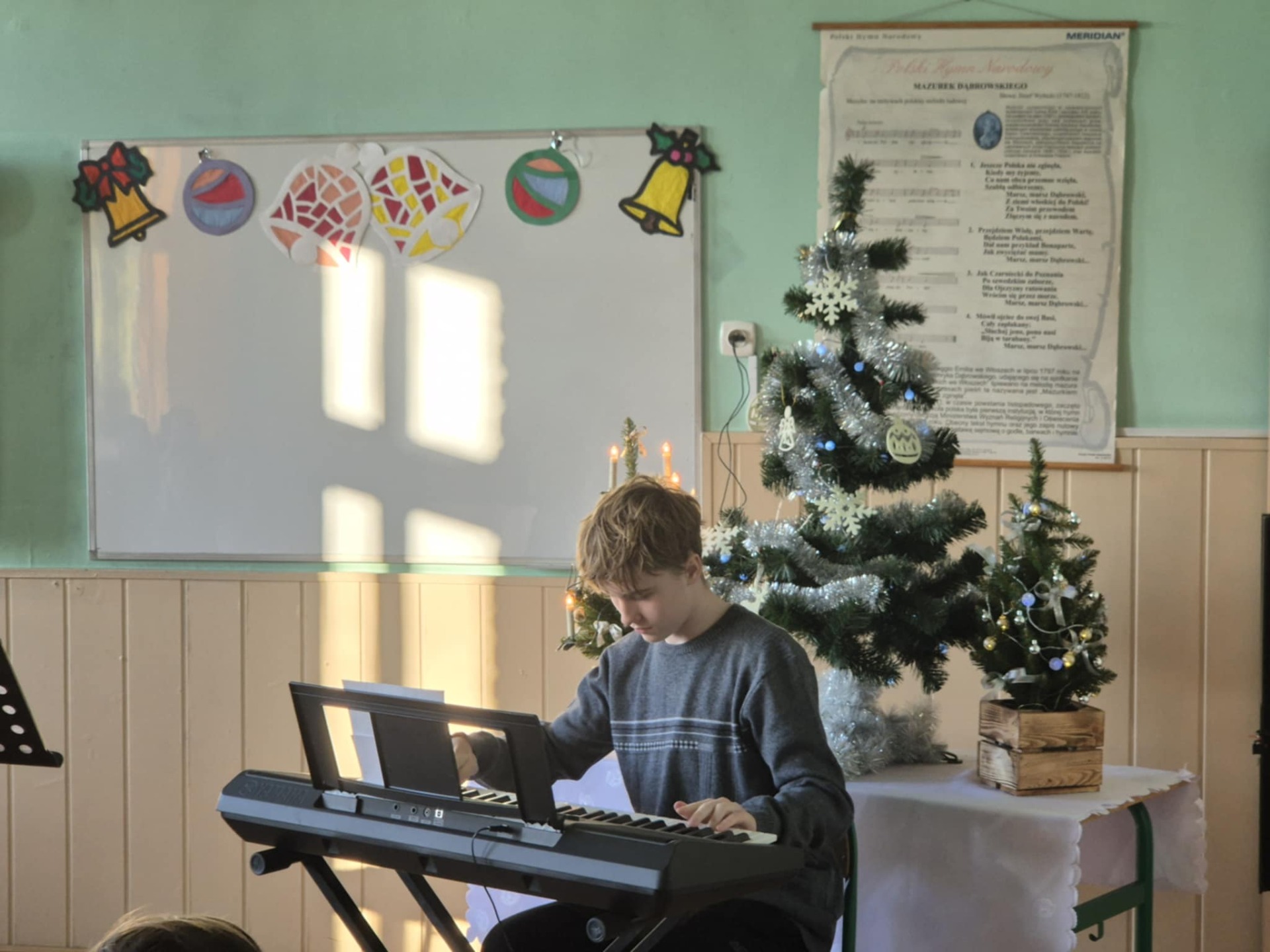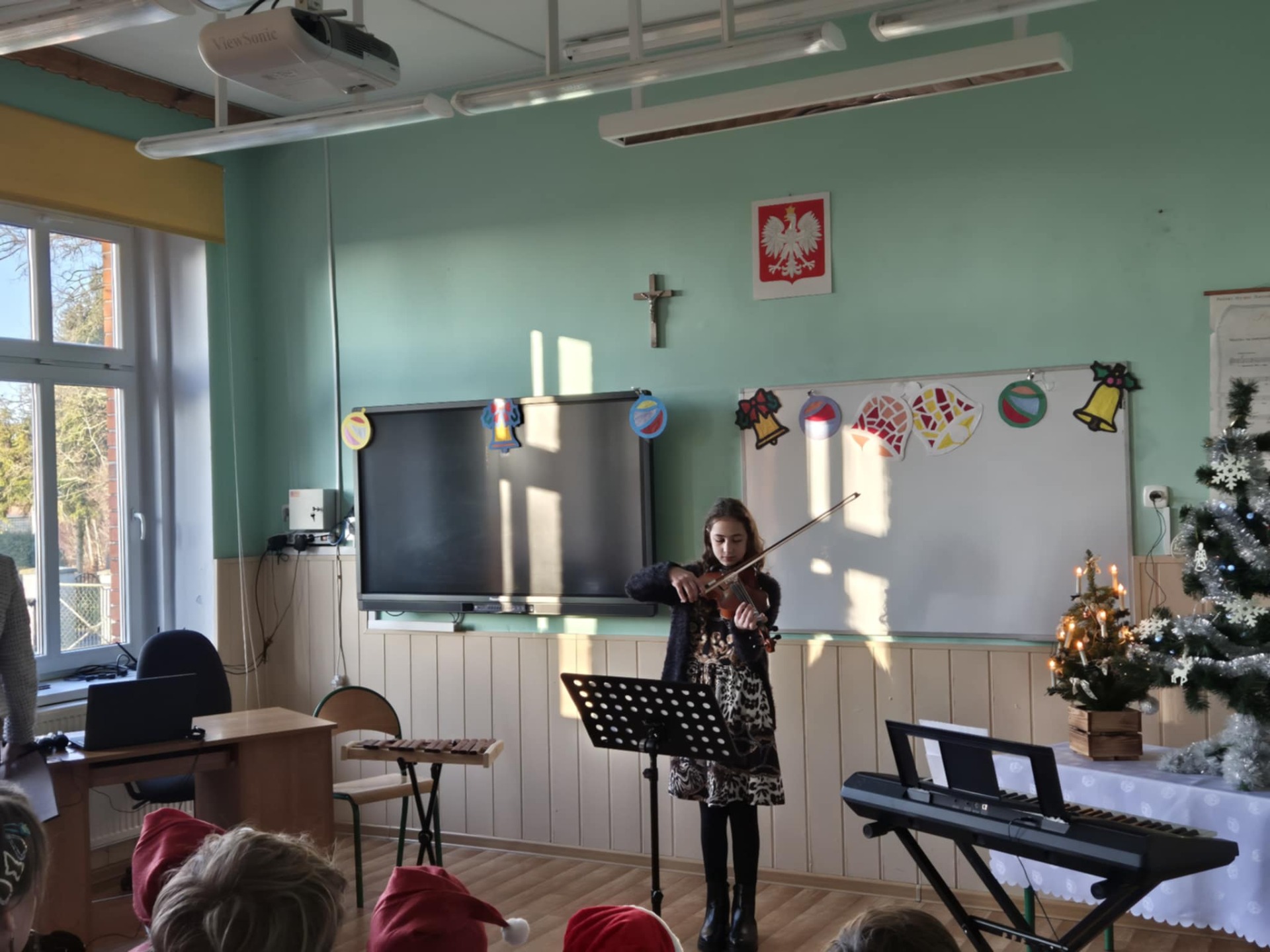 19 grudnia odbył się Koncert instrumentalno - wokalny z okazji zbliżających się Świąt Bożego Narodzenia w wykonaniu uczniów naszej szkoły. Wydarzenie wprowadziło zgromadzonych w atmosferę pełną refleksji, zadumy, a przede wszystkim radości. Podczas koncertu zaprezentowano zarówno tradycyjne polskie kolędy jak również angielskie świąteczne przeboje wykonane przez uczniów wszystkich klas. Zagrali dla nas: